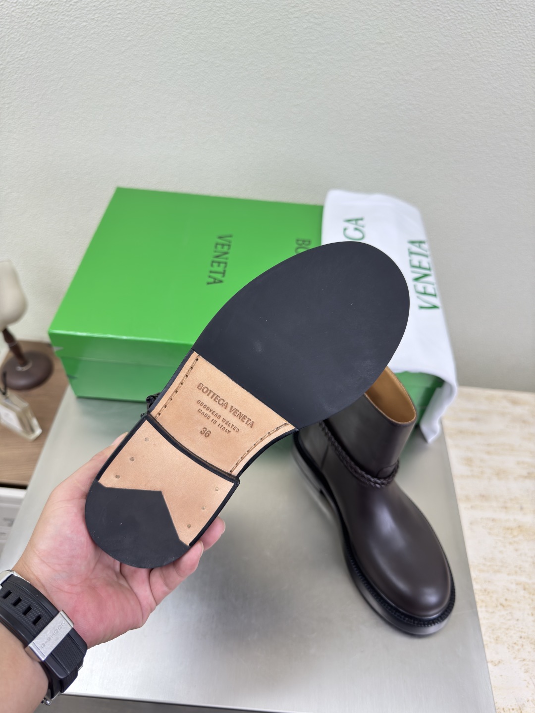 ボッテガヴェネタ(Bottega Veneta)の洗練されたトライアングルデザインを取り入れたスーパーコピー 優良サイト限定ブーツ。しなやかなレザー調素材と精巧なステッチで構成された美しいフォルムが魅力。ダークブラウンの深みある色合いが高級感を漂わせ、シーンを選ばず活躍します。スーパーコピー 優良サイト品質で作られた高精度な再現は、ディテールまで忠実。軽量で安定感あるソールにより長時間の着用も快適。上質を求める大人にぴったりの一足です。