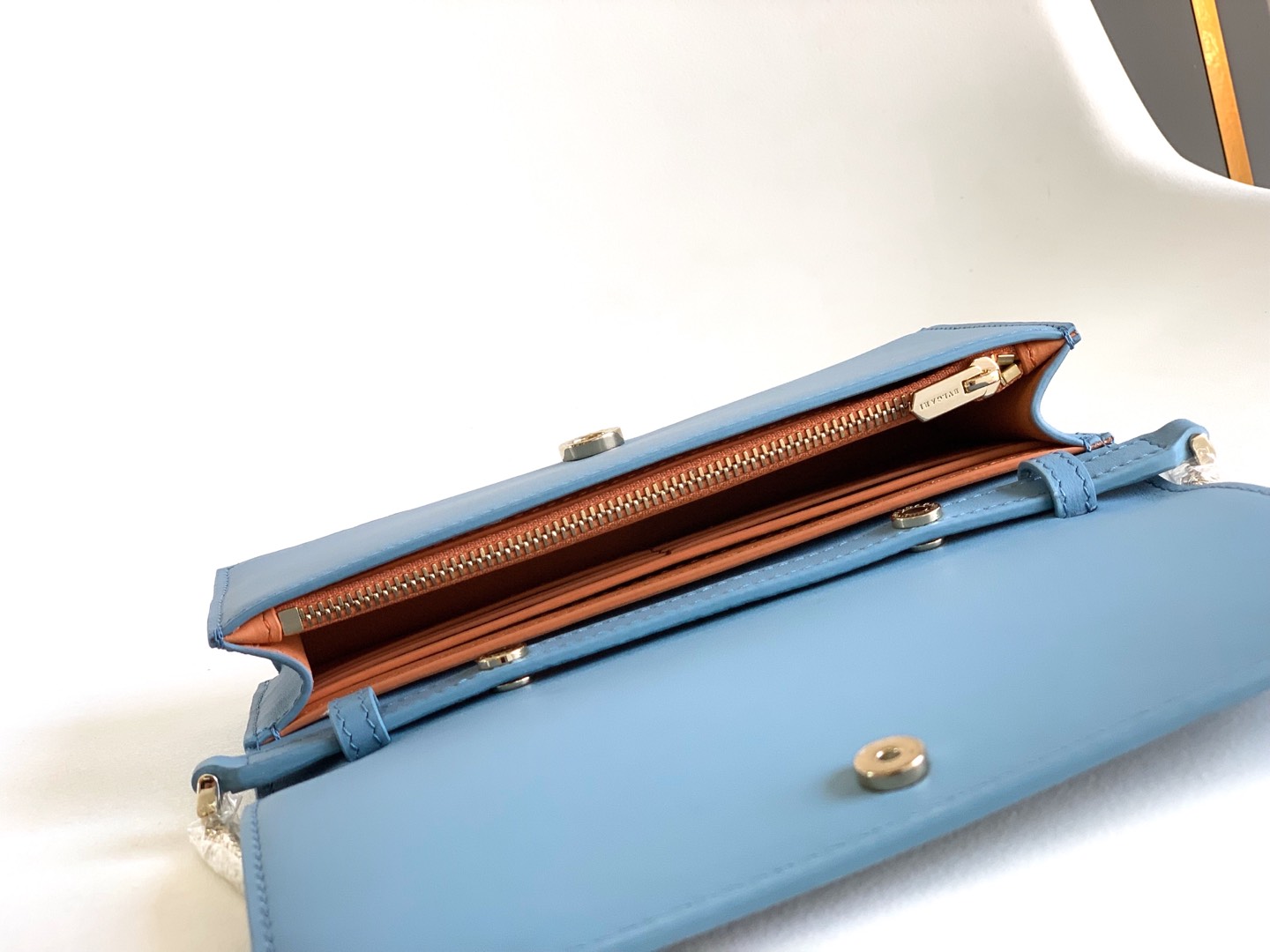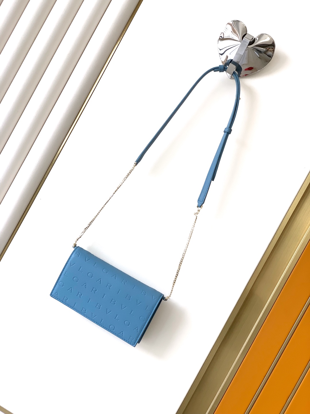 ブルガリのブランドロゴを全面にエンボス加工で施したn級チェーンウォレットは、鮮やかなブルーカラーが印象的なスタイリッシュな一品です。立体的に浮かび上がるロゴが上品なアクセントとなり、シンプルながら存在感のあるデザインに仕上げられています。滑らかなレザー素材と丁寧な縫製により、美しいフォルムと心地よい手触りを実現。薄型設計ながらカードや紙幣、小物を整理しやすい実用的な内部構造を備えています。チェーンストラップ付きで肩掛けや斜め掛けにも対応し、シーンに応じて使い分け可能。高級感仕上げを求める方におすすめの魅力的なモデルです。