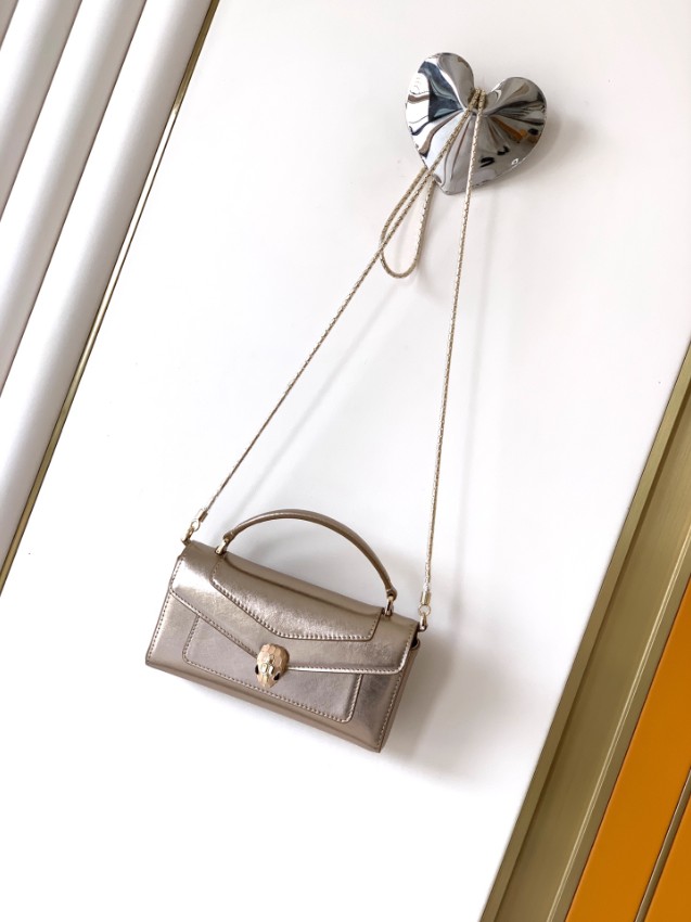 ブルガリ ハイブランドのセルペンティトップハンドルバッグは、上品に輝くゴールドカラーが印象的で、コーディネートに華やかさをプラスします。ブランドを象徴する蛇モチーフの金具は精巧に仕上げられ、視線を引きつけるアクセントとして存在感を放ちます。滑らかな質感と丁寧な縫製により高級感ある仕上がりを実現し、細部までこだわりを感じられるデザインです。トップハンドルとチェーンストラップの2WAY仕様で、シーンに応じた使い分けが可能。コンパクトながら必要な小物をしっかり収納でき、日常使いからパーティーシーンまで幅広く活躍する一品です。