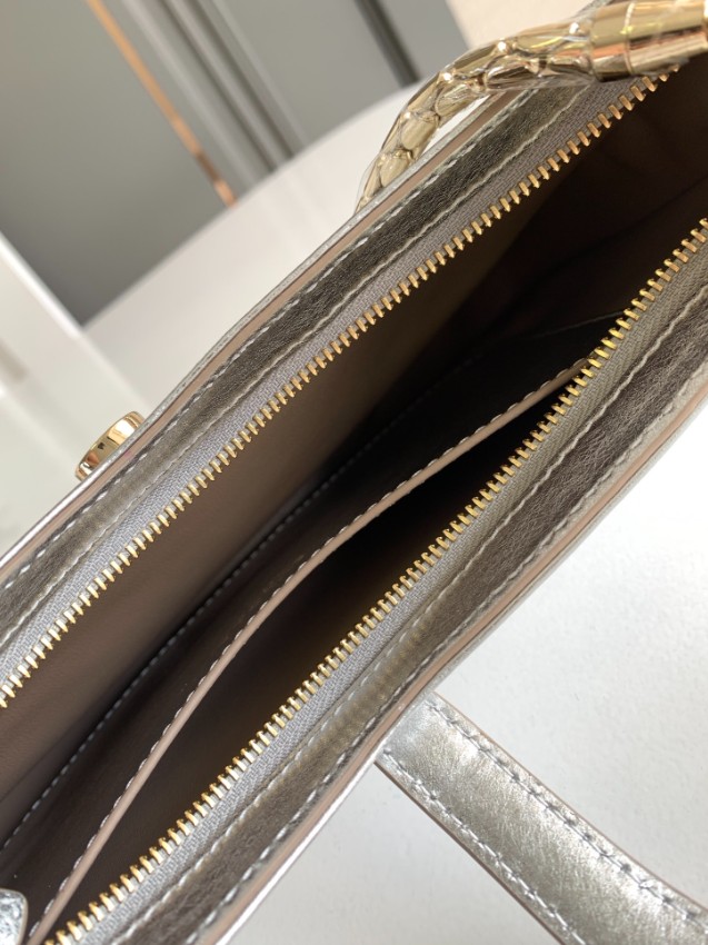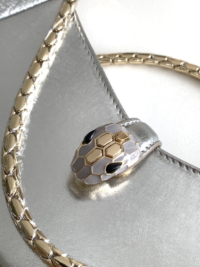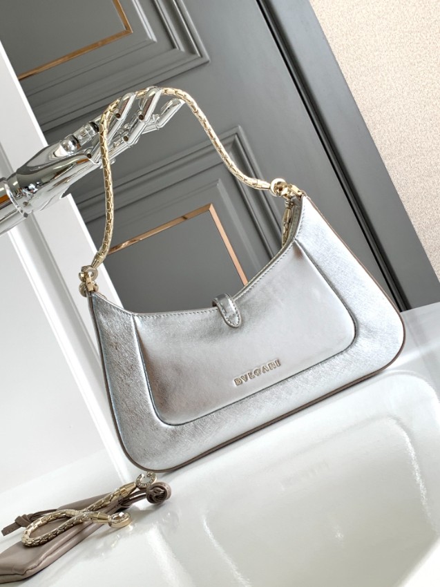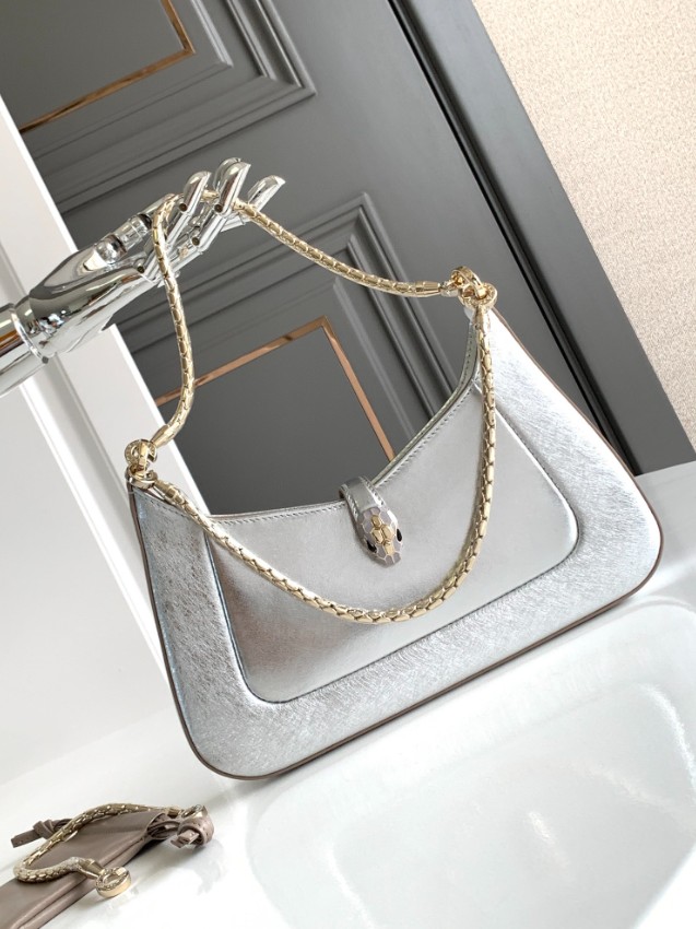 ブルガリ n級のセルペンティチェーンショルダーバッグは、柔らかなカーブを描くホーボーシルエットが特徴で、女性らしいエレガントな雰囲気を演出します。上品に輝くシルバーカラーの素材は光の角度によって表情を変え、コーディネートに華やかさをプラス。ブランドを象徴するスネークモチーフの留め具とチェーンは精密ディテールで再現され、細部まで高級感を感じさせます。肩掛けしやすいチェーンストラップと程よい収納力により、日常使いからお出かけシーンまで幅広く活躍。スタイル性と実用性を兼ね備えた魅力的なアイテムです。