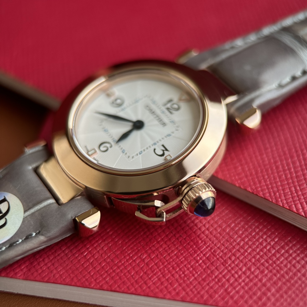 カルティエを象徴する丸型フォルムの「パシャ ドゥ カルティエ」を高再現度で仕上げたブランド コピー 安全通販限定モデル。シルバーの文字盤にはギョーシェ装飾が施され、光の角度で繊細に輝きます。グレーのストラップが落ち着きと気品を演出し、どんなファッションにも合わせやすい万能デザイン。ブルースチール針とローズゴールドケースが手元を上品に彩り、エレガンスと実用性を両立。ブランド コピー 安全通販で高評価・安心保証・レビュー高リピ率のおすすめ新作腕時計。