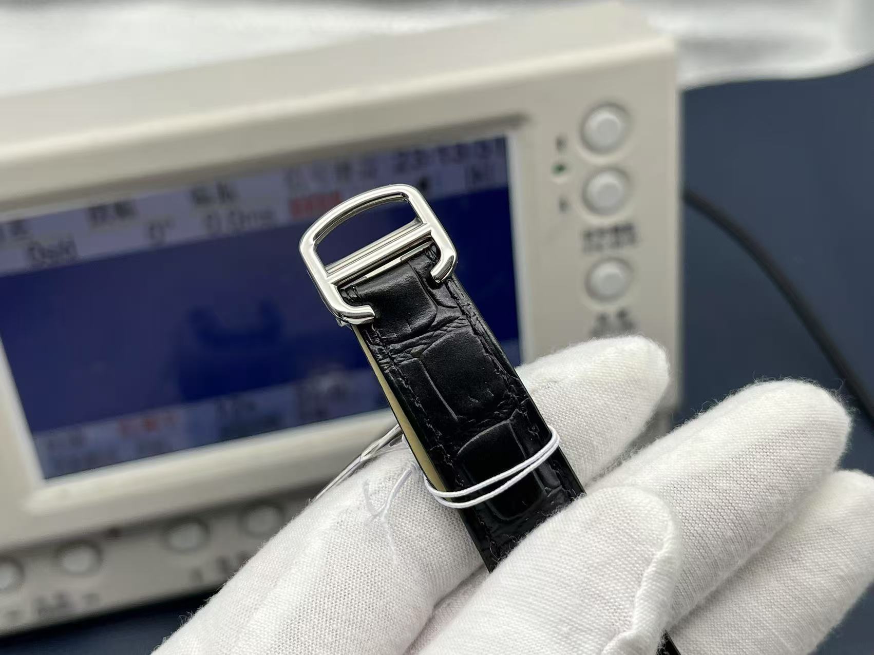 カルティエの名作「バロンブルー」を高再現度で仕上げた高級時計 コピーモデル。丸みを帯びたシルバーケースに、精緻なギョーシェ模様の文字盤とローマインデックスを配置。風防には立体感のあるサファイアガラスを使用し、ブルースチール針がエレガントに時を刻みます。自動巻きムーブメントを搭載し、精度と高級感を両立。ブラックレザーストラップがビジネスにもフォーマルにも最適。高級時計 コピー品質で安心の保証付き、レビュー高評価の人気腕時計。