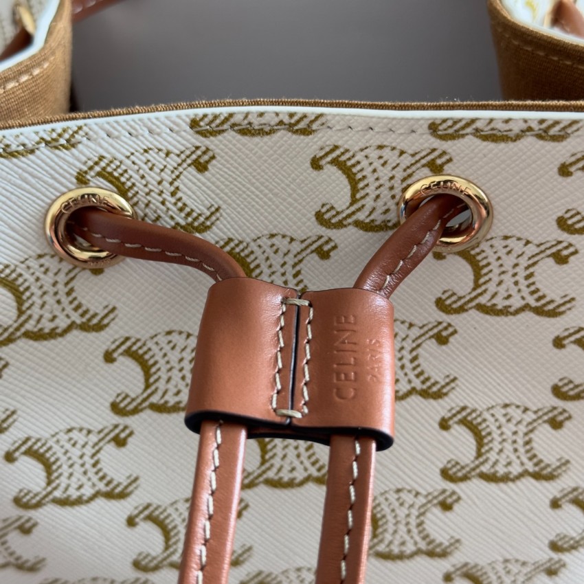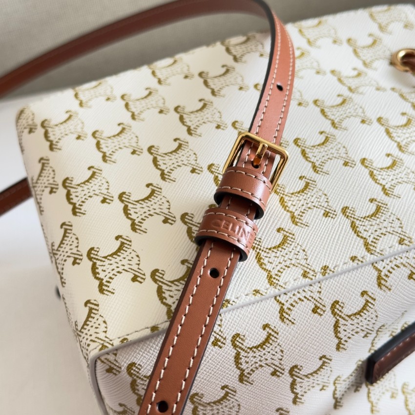 セリーヌのホワイトキャンバス バケットバッグは、軽やかで爽やかな印象を与える2025新作アイテムです。上質なキャンバス地にブランドを象徴するトリオンフ柄を全面にあしらい、ブラウンレザーのドローコードがアクセントとなっています。巾着仕様で開閉が簡単、コンパクトながらも収納力があり、デイリーユースはもちろん旅行やショッピングにも最適。ホワイト×ゴールド調のデザインは清潔感があり、季節を問わずコーデを格上げしてくれます。ブランド コピー商品の中でも特に完成度の高いAAA級レプリカで、芸能人愛用モデルとしても人気。丁寧な縫製と高品質素材で仕上げられた安心の逸品を、発送保証付きで安全にお届けします。