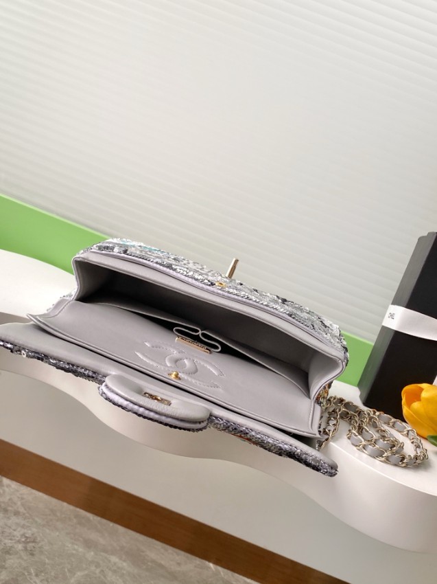 季節を問わず愛用できるベーシックなスタイルが人気の理由です。シルバーを基調に、カラフルなスパンコールが光の角度ごとに表情を変えるデザインは、シャネルらしい華やぎを感じさせる激安仕様のフラップバッグ。「キラキラして本当に可愛い」「写真以上の存在感」といったレビューも寄せられています。精密ディテールで仕上げられた多色スパンコールは高級感仕上げの輝きを放ち、特別なコーデに華やかなアクセントをプラス。容量も程よく、イベント・ディナー・デイリーユースまで幅広く活躍できるのも魅力です。圧倒的な再現度で仕上げられ、発送保証つきの安心サイトから初めてでも安全に選べる信頼の一品です。