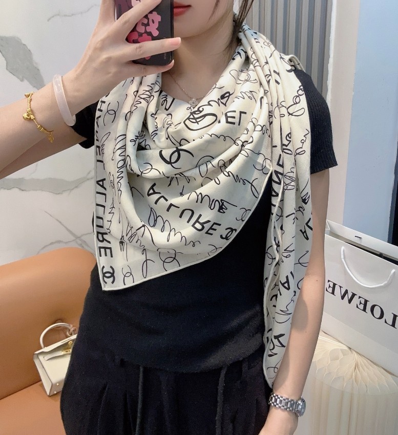 高級感漂うデザインで、落ち着いた雰囲気を演出してくれます。シャネルらしいサイン調ロゴとココマークを組み合わせ、格安モデルでありながら違和感のない自然な再現度が魅力です。軽やかで肌当たりの良い素材を使用し、首元に巻いた際のフィット感も良好。実際の購入者からは「柄が上品でコーデに合わせやすい」「価格以上の質感で満足」といった声が多く寄せられています。季節を問わず活躍し、日常から外出まで幅広く使える定番ストールとして、満足度の高い人気アイテムです。
