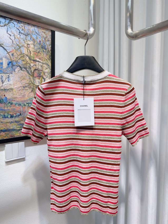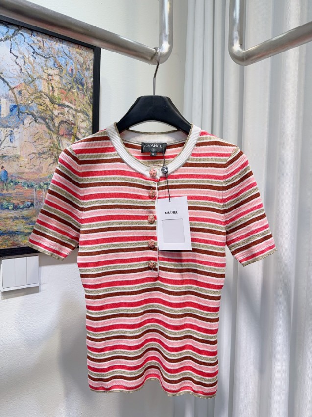 シャネルテイスト魅力を気軽に楽しめる本物級コピー仕様ボーダーニット半袖トップス。柔らかなニット素材に華やかなマルチボーダーデザインを組み合わせ、上品で女性らしい雰囲気を演出します。フロント部分にはブランドイメージを感じさせる装飾ボタンを配置し、シンプルながら洗練されたアクセントとして存在感をプラス。通気性良い素材感により春夏シーズンでも快適な着心地を実現し、デニムやスカートなど様々なボトムスと合わせやすいデザインです。カジュアルスタイルからきれいめコーデまで幅広く活躍する定番トップスとして、日常ファッションをさりげなく格上げしてくれる一着です。