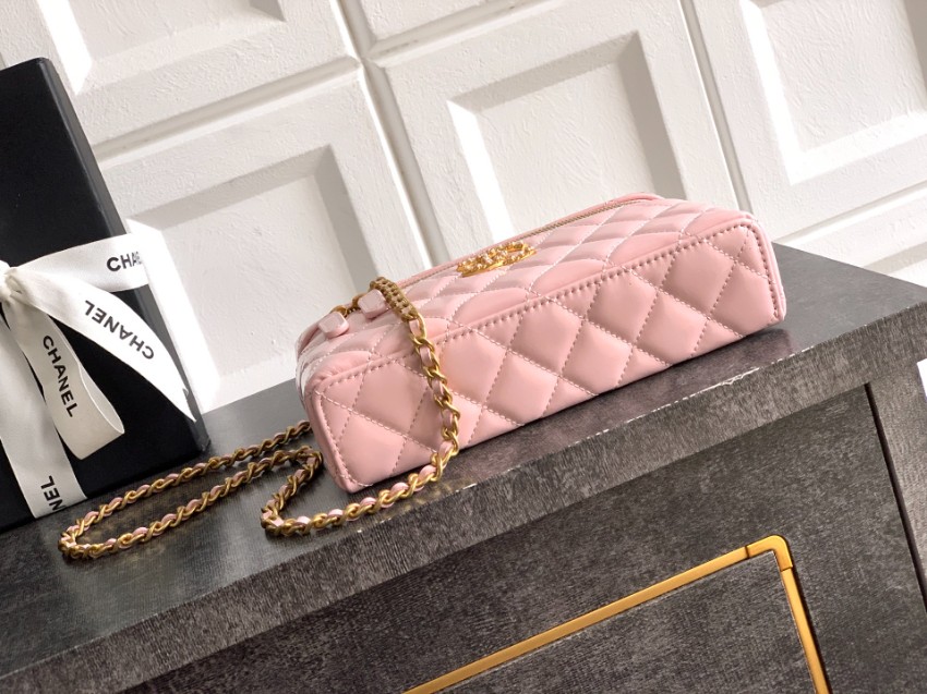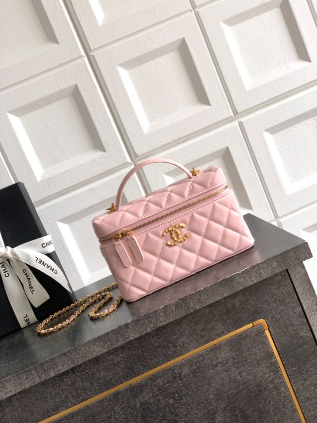 シャネルスタイル魅力を取り入れたブランド コピー仕様キルティングレザーミニバニティバッグ。柔らかなレザー調素材にクラシックなダイヤキルティングを施し、中央ロゴ金具がエレガントなアクセントとして存在感を放ちます。可愛らしいピンクカラーがコーディネートに華やかさをプラスし、フェミニンな印象を演出。トップハンドルとチェーンショルダーストラップを組み合わせた2WAY仕様で、ハンドバッグとショルダーバッグ両方のスタイルを楽しめます。ファスナー開閉設計によりスマートフォンやカードケース、コスメなど日常小物をすっきり収納可能。高再現度ディテールにより上質感を演出し、デイリーからお出かけまで幅広いシーンで活躍する魅力的なバッグです。