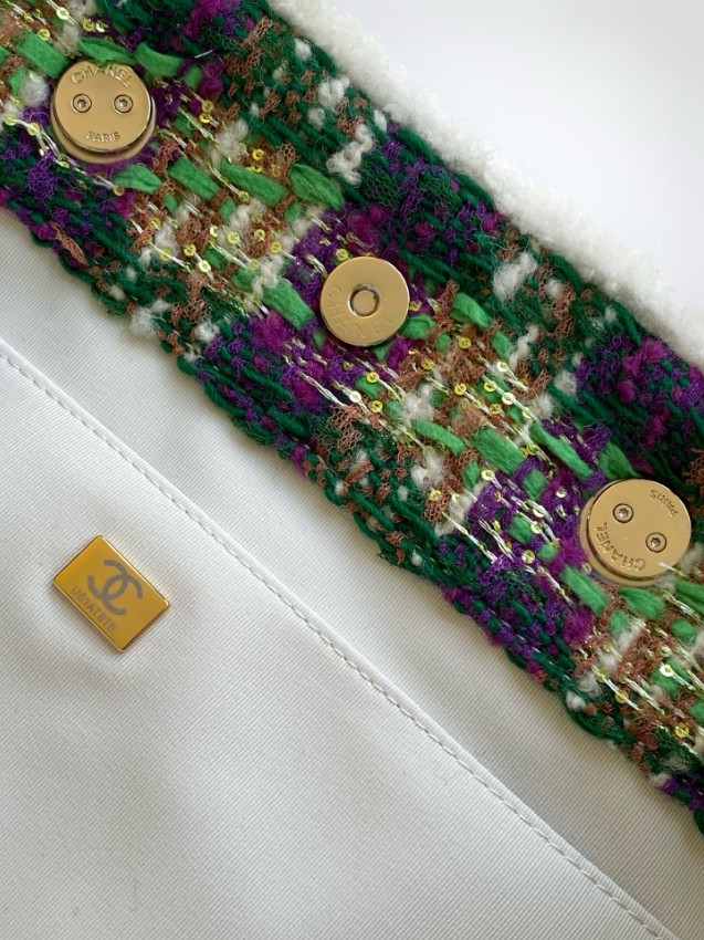 シャネル ブランド コピーとして仕上げられた本モデルは、カラフルなツイード素材を使用した存在感のあるハンドバッグです。グリーンやパープルを基調としたチェック柄にホワイトトリムを組み合わせ、華やかさと上品さを兼ね備えたデザインに仕上げられています。レザーハンドルとチェーンストラップの2WAY仕様で、シーンに応じた使い分けが可能。収納力もあり、日常使いからお出かけまで幅広く活躍します。細部まで丁寧に再現されたディテールと追跡可能な配送対応により、安心してお選びいただける一品です。