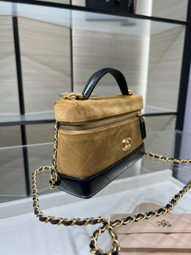 シャネルの洗練されたデザインを取り入れた本物級コピーショルダーバッグは、スエード調とレザーを組み合わせたバイカラー仕様が特徴です。フロントのココマークとゴールドチェーンが上品なアクセントとなり、全体に高級感を演出。バニティ風のフォルムは収納力とデザイン性を兼ね備え、ファスナー開閉により中身の出し入れもスムーズです。ハンドルとチェーンの2WAY仕様で使い勝手が良く、シーンに応じて持ち方を変えられる点も魅力。高級感仕上げで細部まで丁寧に作り込まれており、日常から特別なシーンまで幅広く活躍するアイテムです。