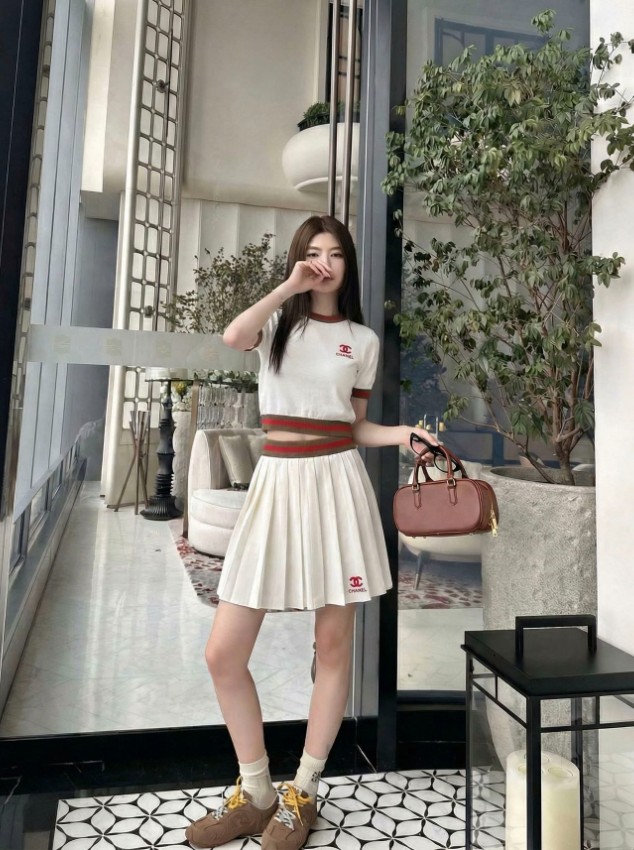 清潔感あふれるホワイトカラーが魅力のシャネル ハイブランド ニットセットアップは、シンプルながらも高級感を感じさせるデザインが特徴です。柔らかなニット素材を使用し、肌に優しくフィットしながら快適な着心地を実現。トップスはコンパクトなシルエットでスタイルアップ効果があり、スカートは美しいプリーツ加工により動きに合わせて軽やかに揺れます。リブ部分の配色ラインとロゴ刺繍がアクセントとなり、全体のバランスを引き締めます。セットでの着用はもちろん、それぞれ単品でも活躍し、幅広いコーディネートに対応。日常からお出かけまで使える上品な一着です。