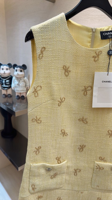 柔らかなイエローカラーが目を引くシャネル 本物級コピー ツイードワンピースは、可憐さと上品さを兼ね備えたデザインが魅力です。全体に施されたリボン刺繍が立体的な表情を生み出し、さりげない華やかさをプラス。ツイード素材は軽やかで通気性もあり、快適な着心地を実現します。ノースリーブ仕様によりすっきりとしたシルエットを演出し、季節に合わせてインナーとのレイヤードも楽しめます。フロントのポケットディテールが実用性とデザイン性を両立し、日常使いからお出かけまで幅広く対応。丁寧な仕立てと上質な質感により、長く愛用できる一着です。
