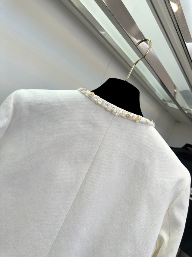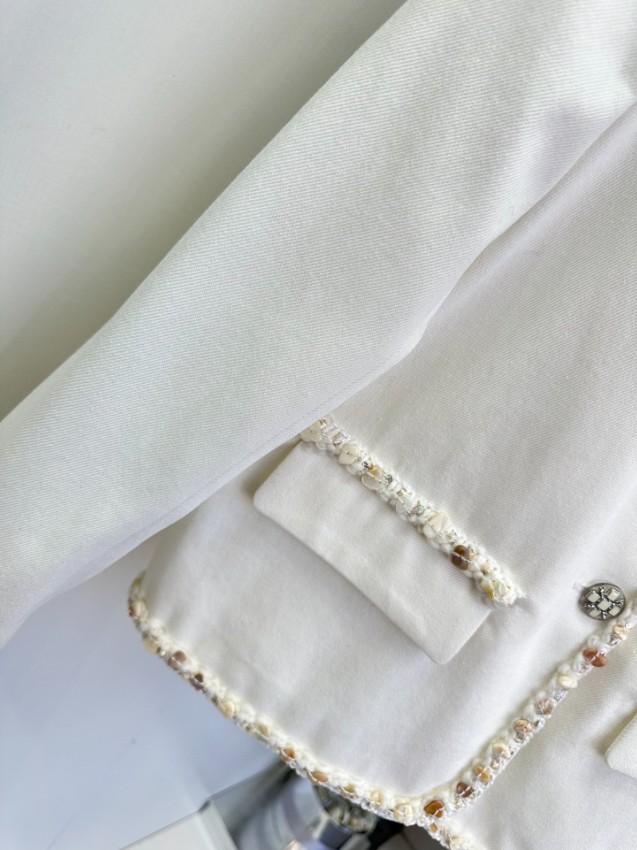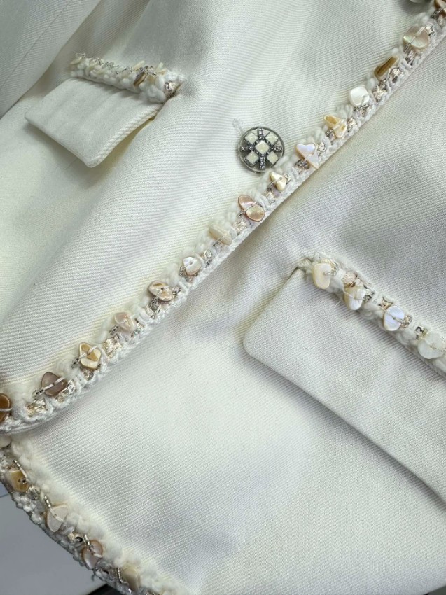 清潔感のあるホワイトカラーが印象的なシャネル n級 ツイードジャケットは、エレガントで洗練されたスタイルを叶える一着です。上質素材を使用したツイード生地は、軽やかな着心地と美しいフォルムを実現。ノーカラーデザインにより顔周りをすっきり見せ、インナーとの組み合わせも楽しめます。縁取りには繊細な装飾が施され、細部までこだわり抜かれた仕上がりが高級感を引き立てます。フロントボタンやポケットディテールも上品なアクセントとなり、シンプルながら存在感のある印象に。デイリーからフォーマルまで幅広く活躍する万能ジャケットです。
