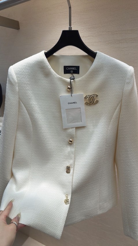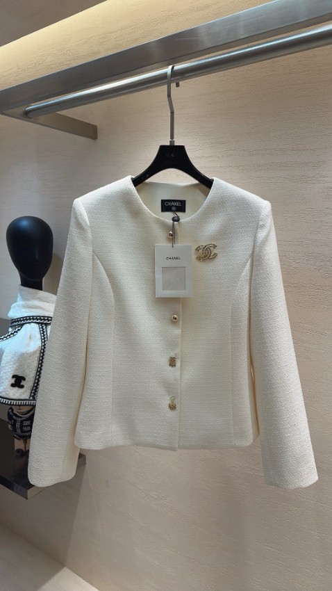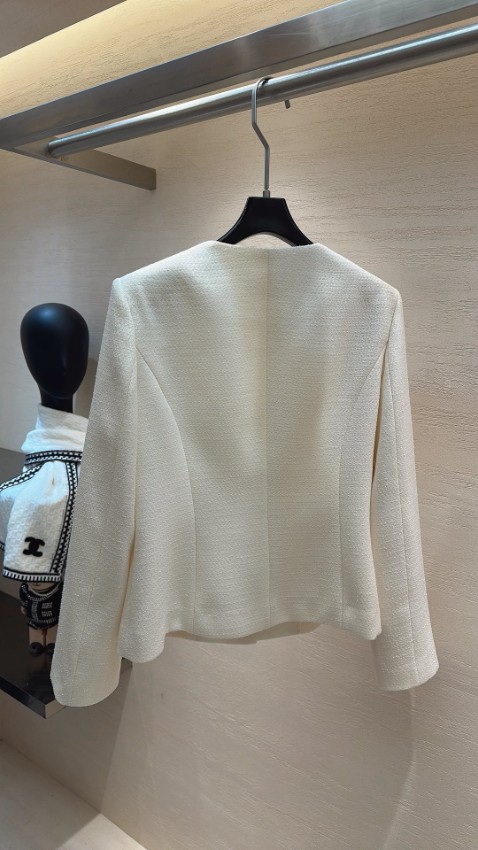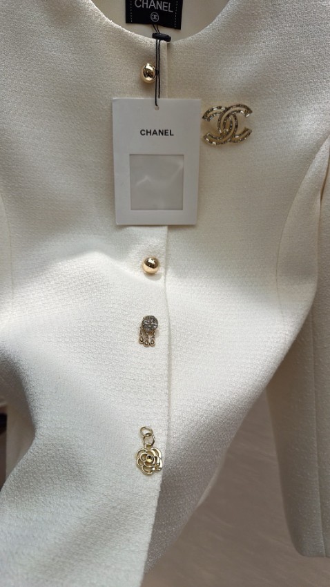 シャネル ハイブランドとして仕上げられた本ジャケットは、柔らかなアイボリートーンが上品な雰囲気を引き立てる一着です。ノーカラーデザインにより首元がすっきりと見え、洗練されたシルエットを演出。フロントには装飾性のあるボタンとブローチが施され、細部までこだわったディテールが魅力です。生地は程よい厚みで型崩れしにくく、長く美しいシルエットを保ちます。軽やかな着心地でストレスなく着用でき、フォーマルシーンはもちろん日常のコーディネートにも自然に溶け込む圧倒的な再現度を誇る一着です。