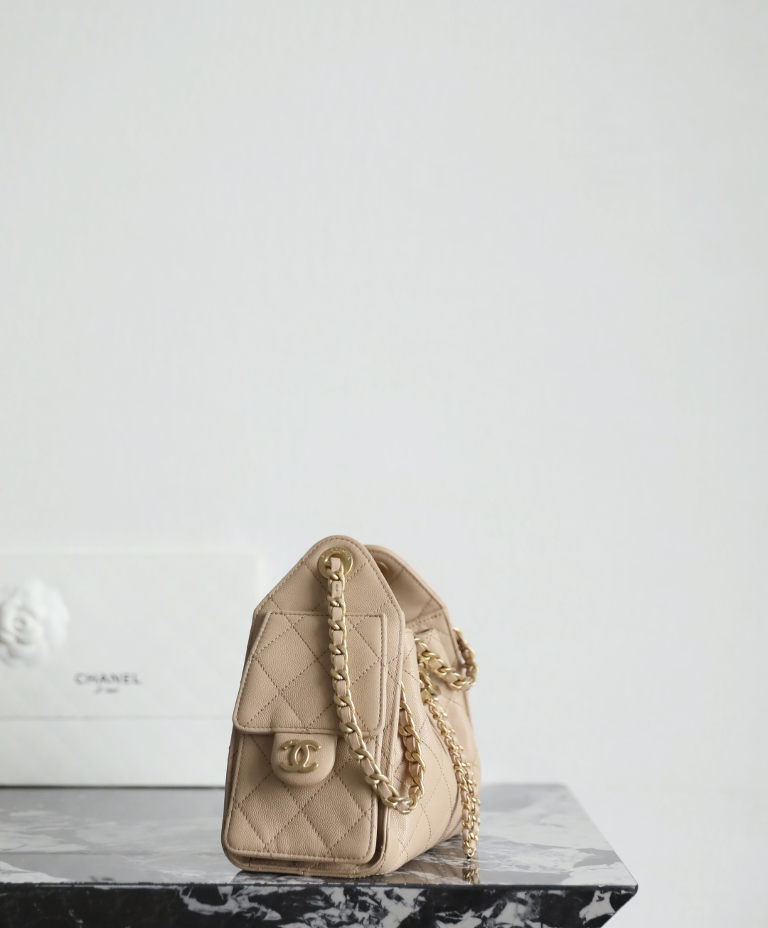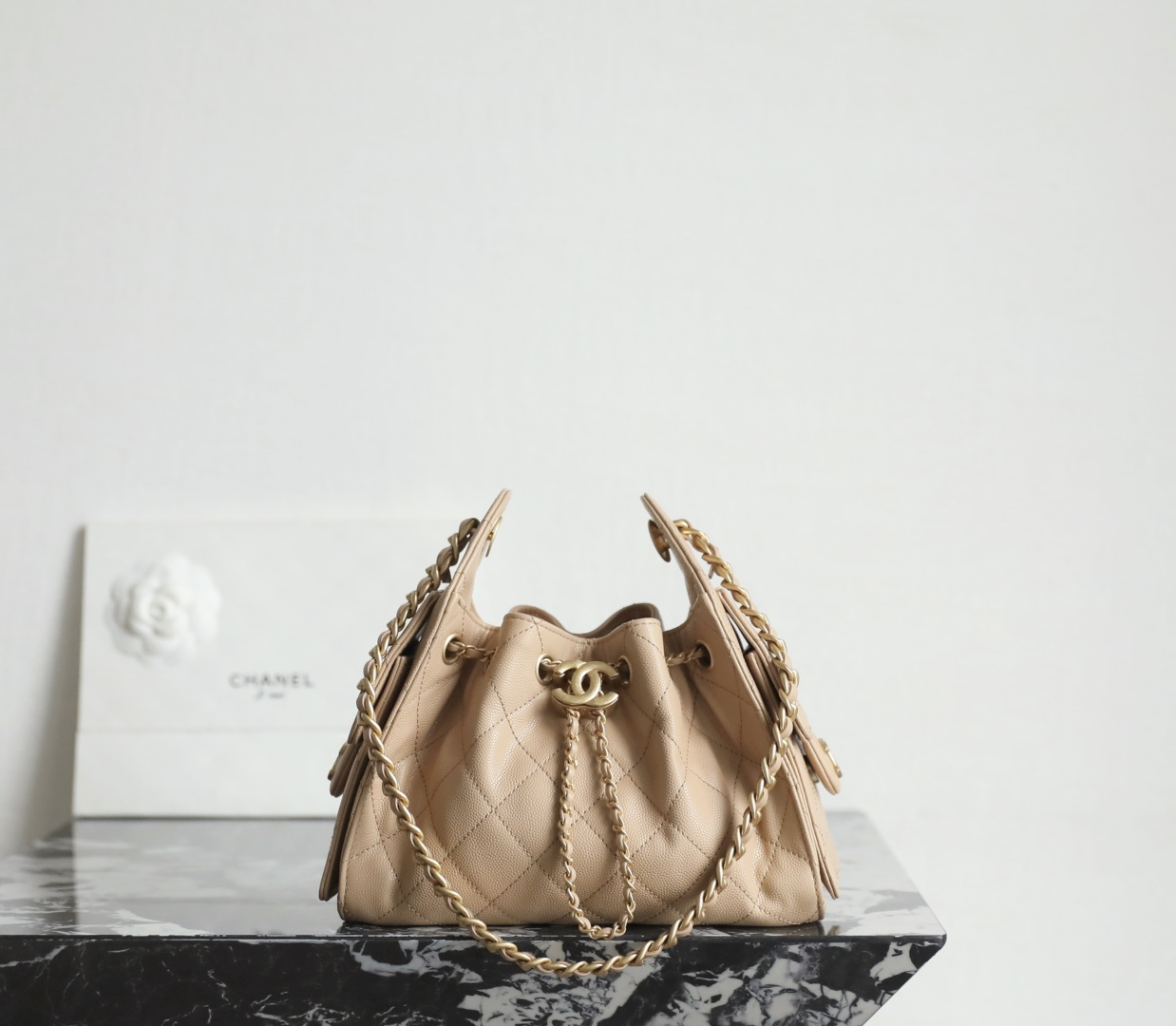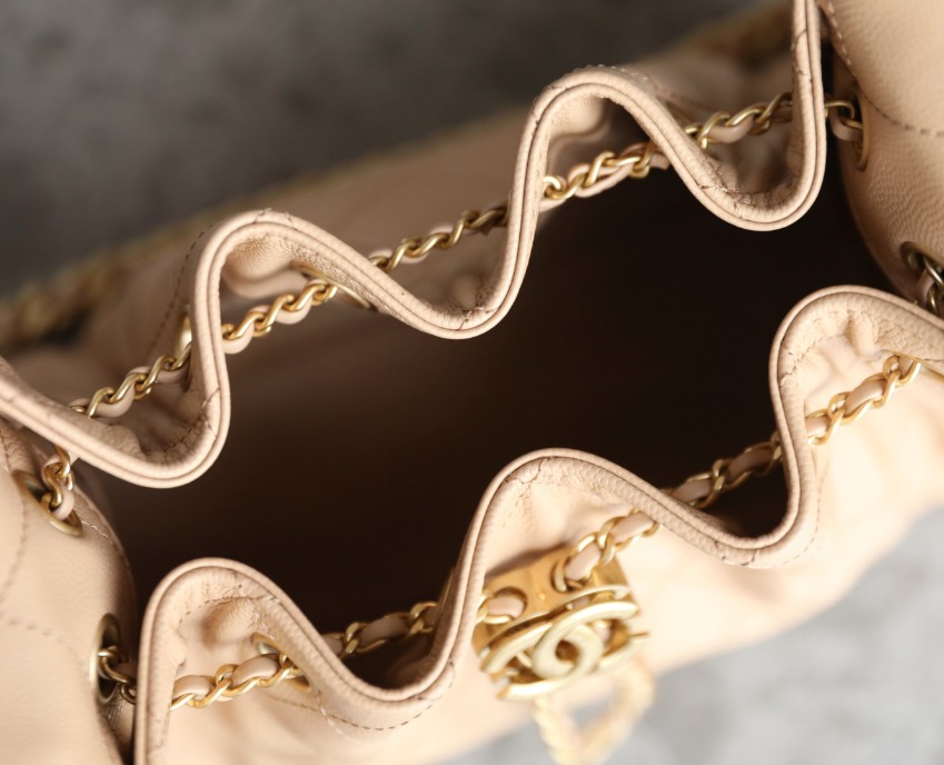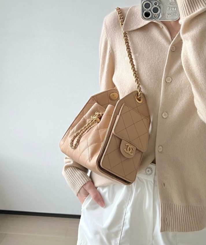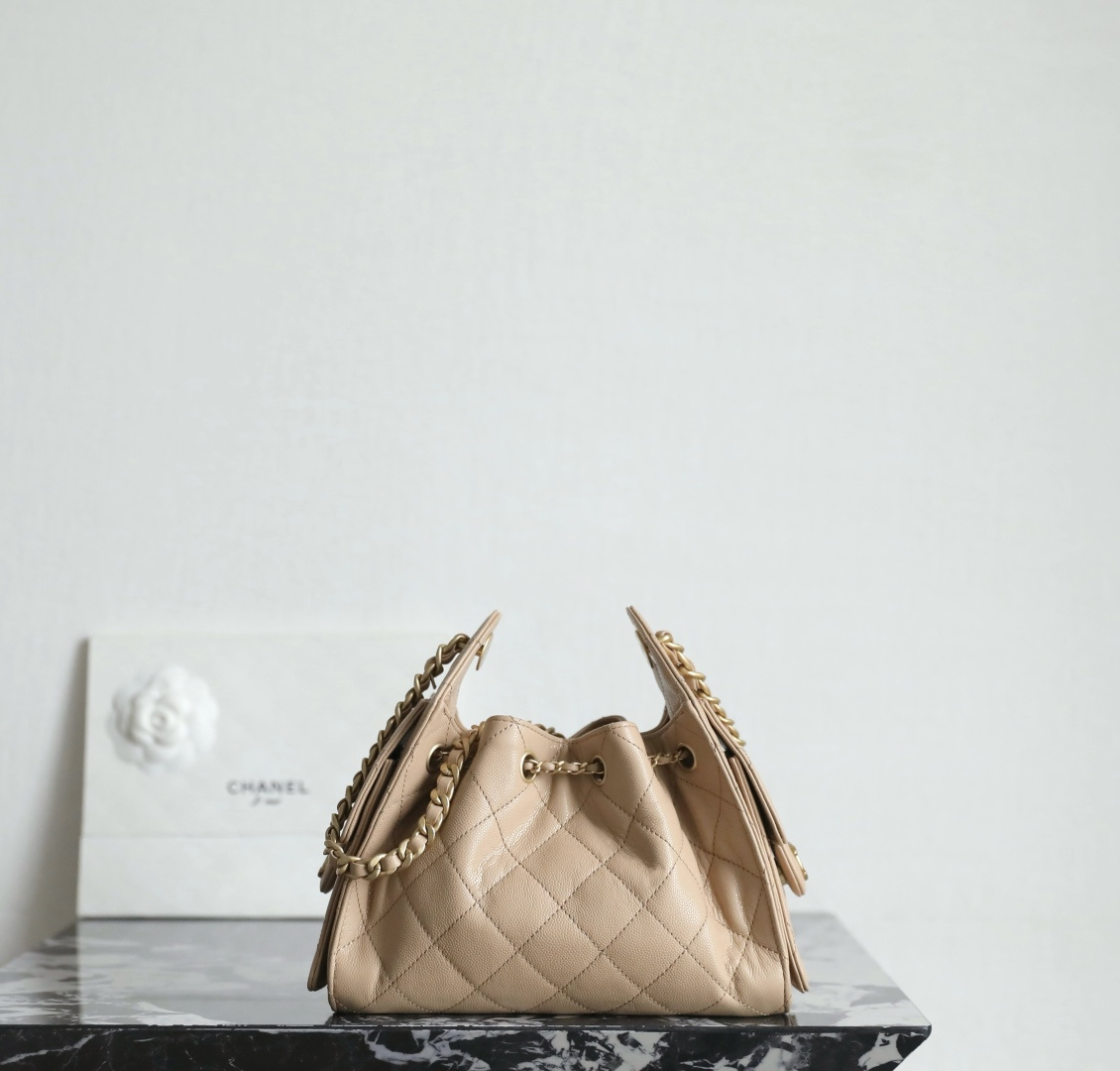 シャネル スーパーコピーのドローストリングバッグは、優しいベージュカラーとふんわりとしたフォルムが女性らしさを引き立てるデザイン。キャビアスキン調素材は細かな粒感があり、耐久性と上品な質感を兼ね備えています。特徴的な巾着型シルエットにキルティングステッチが施され、中央のココマーク金具がアクセントとなり洗練された印象を演出。チェーンショルダーは肩掛けや手持ちなど多様なスタイルに対応し、日常使いからお出かけまで幅広く活躍します。内部は見た目以上の収納力があり、小物をすっきり整理可能。上質感を重視した仕上がりで、コーディネートに華やかさをプラスする一品です。