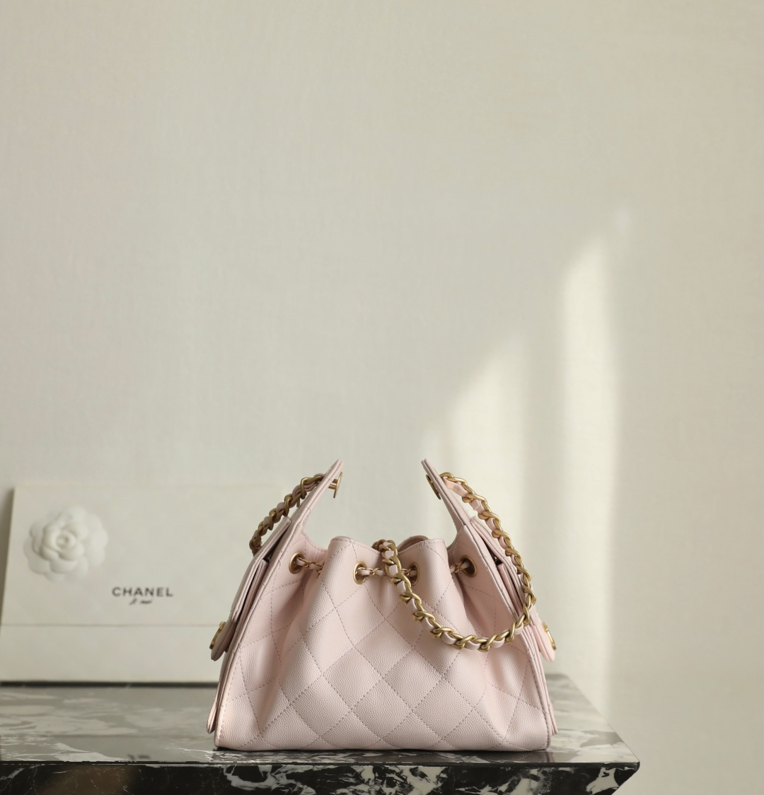 シャネル ブランド コピーのドローストリングバッグは、優しいピンクカラーが女性らしさを引き立てるエレガントなデザイン。キャビアスキン風素材は細かな粒感があり、柔らかな手触りと耐久性を兼ね備えています。特徴的な巾着型フォルムにキルティングステッチを施し、中央のココマーク金具が上品なアクセントに。レザー編み込みチェーンストラップは肩掛けや手持ちなど多様なスタイルに対応し、日常使いからお出かけまで幅広く活躍します。内部は見た目以上の収納力があり、小物を整理しやすい設計。高級レベル仕様の丁寧な作りで、コーディネートを格上げする一品です。