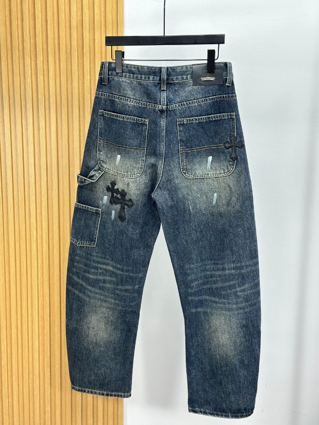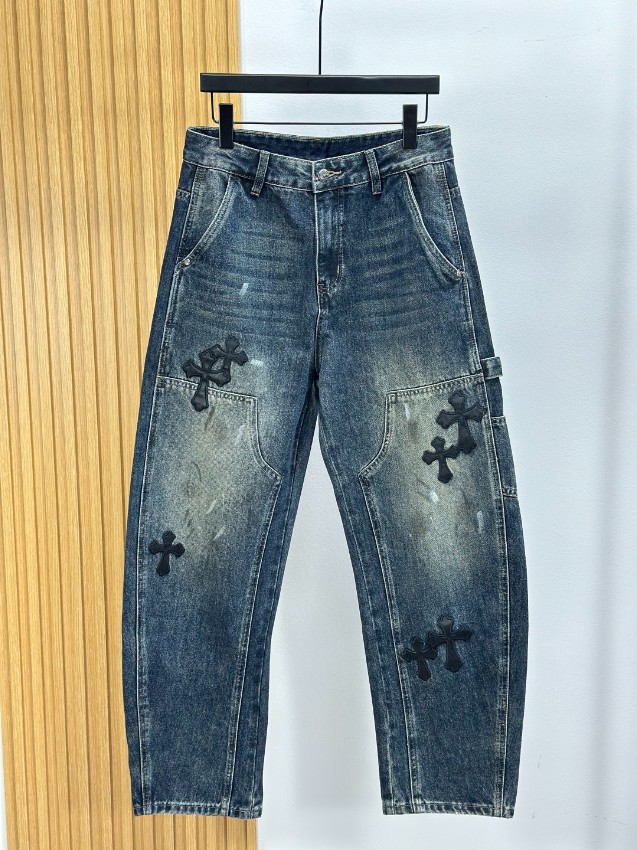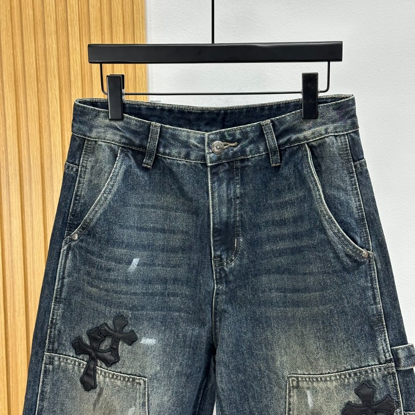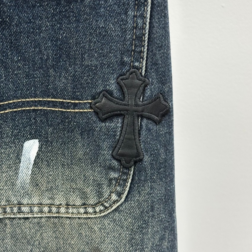 2025新作として登場したクロムハーツ風ブルーデニムパンツは、n級モデルの中でも特に完成度の高い一着。深みのあるインディゴブルーに施されたフェード加工と、アイコニックなブラッククロスレザーパッチが絶妙なコントラストを生み出しています。細部の縫製から素材選定まで丁寧に作り込まれ、履き込むほどに味わいが増すリアルなヴィンテージ感を再現。ゆったりめのシルエットがストリートテイストを引き立て、Tシャツやスウェットとの相性も抜群。シーズンを問わず愛用できる万能なデザインで、n級ながら高級ブランド同様の風格を楽しめる一本です。