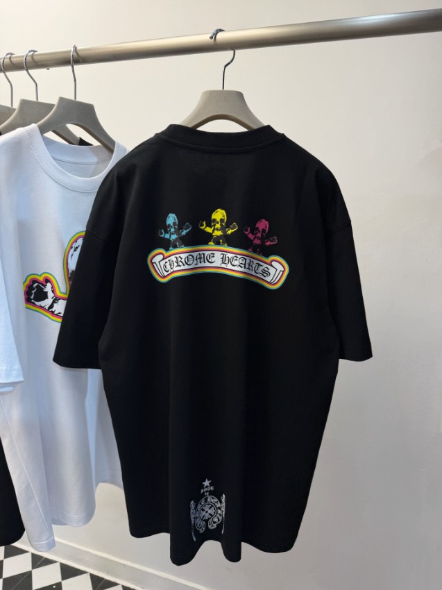 クロムハーツ n級として高い再現度を誇る本アイテムは、フロントに配置されたスカルモチーフとカラフルな縁取りデザインが印象的で、シンプルなブラックボディに鮮やかなアクセントを加えています。ストリートスタイルに最適なリラックスシルエットで、男女問わず着用しやすいバランスに仕上げられています。柔らかなコットン素材を採用し、肌触り良好で快適な着心地を実現。細部まで丁寧に仕上げられたプリントは耐久性にも優れ、長く愛用できるのが魅力です。日常コーデからトレンド感あるスタイリングまで幅広く活躍する一枚です。