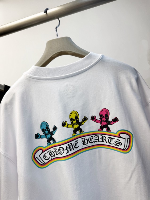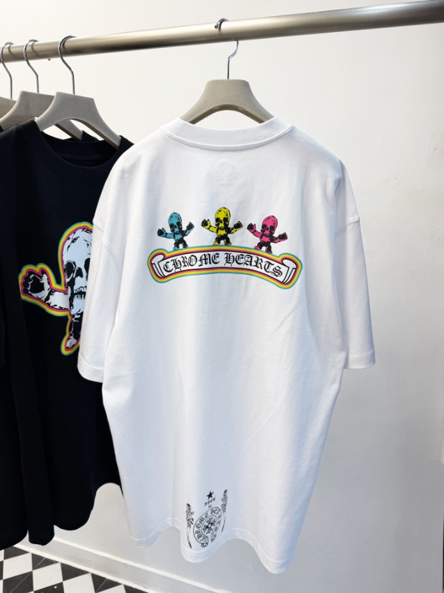 クロムハーツ ハイブランドとして注目される本モデルは、フロント中央に配置されたスカルプリントにカラフルなレインボーラインを重ねることで、視覚的なインパクトと遊び心を両立しています。ホワイトベースのクリーンな印象により、どんなスタイルにも取り入れやすく、ストリートからカジュアルまで幅広く活躍。柔らかなコットン素材を使用し、肌触り良好で長時間の着用でも快適さをキープします。細部まで丁寧に仕上げられたプリントは発色が美しく、耐久性にも優れているため、日常使いにも安心。上質感を求める方にふさわしい仕上がりです。