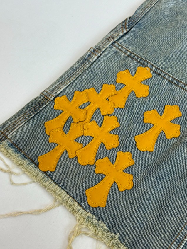 クロムハーツ ブランド コピーのデニムショートパンツは、両サイドに配置された鮮やかなクロスワッペンが視線を引き付けるインパクトあるデザインが特徴です。ウォッシュ加工が施されたデニム生地は程よい色落ちと風合いを持ち、ヴィンテージ感を演出。裾部分にはラフなダメージ加工が加えられ、ストリートテイストを一層引き立てます。しっかりとした素材感でありながら動きやすく、日常使いにも適したバランスの良い仕上がり。シンプルなトップスと合わせるだけで存在感あるスタイリングが完成する、高再現度にこだわった一本です。