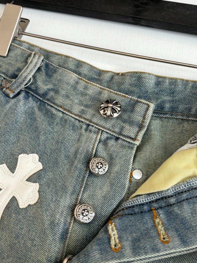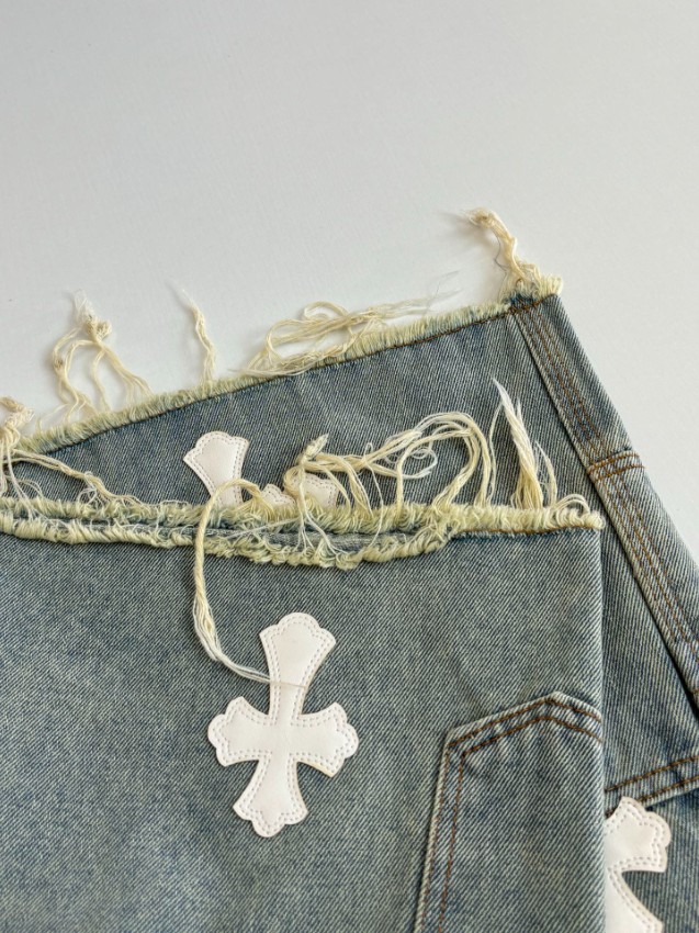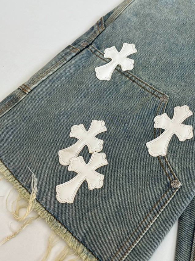 クロムハーツ 格安デニムショートパンツは、フロント全体に配置されたホワイトクロスワッペンが印象的で、シンプルながらも洗練されたストリートスタイルを演出します。ウォッシュ加工による自然な色落ちがヴィンテージ感を引き立て、裾のダメージディテールがラフな雰囲気をプラス。しっかりとしたデニム素材を使用しつつも動きやすく、日常使いに適した快適な履き心地を実現しています。満足度高い仕上がりとデザイン性を兼ね備え、シーズンを問わず活躍する万能な一本です。