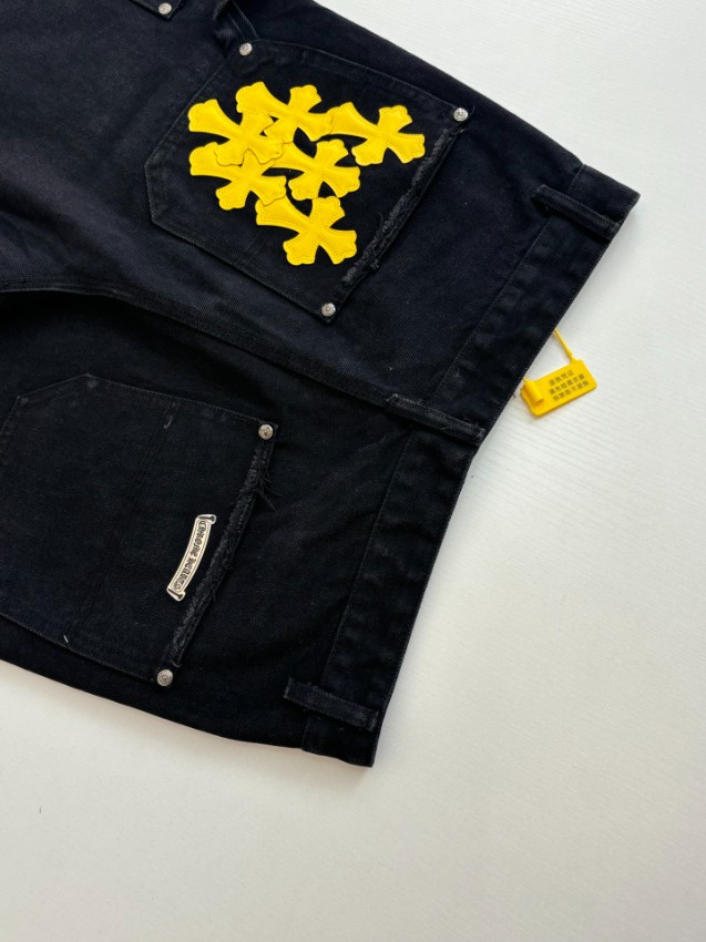クロムハーツ スーパーコピーのデニムショートパンツは、ブラックデニムに映えるイエロークロスワッペンが特徴で、インパクトあるストリートスタイルを演出します。裾には大胆なダメージ加工が施され、ラフでこなれた雰囲気をプラス。しっかりとしたデニム素材を使用しながらも動きやすく、日常使いにも適した快適な履き心地を実現しています。精密ディテールにこだわった仕上がりで、細部まで丁寧に作り込まれており、シンプルなトップスと合わせるだけでスタイリングが完成する存在感ある一着です。