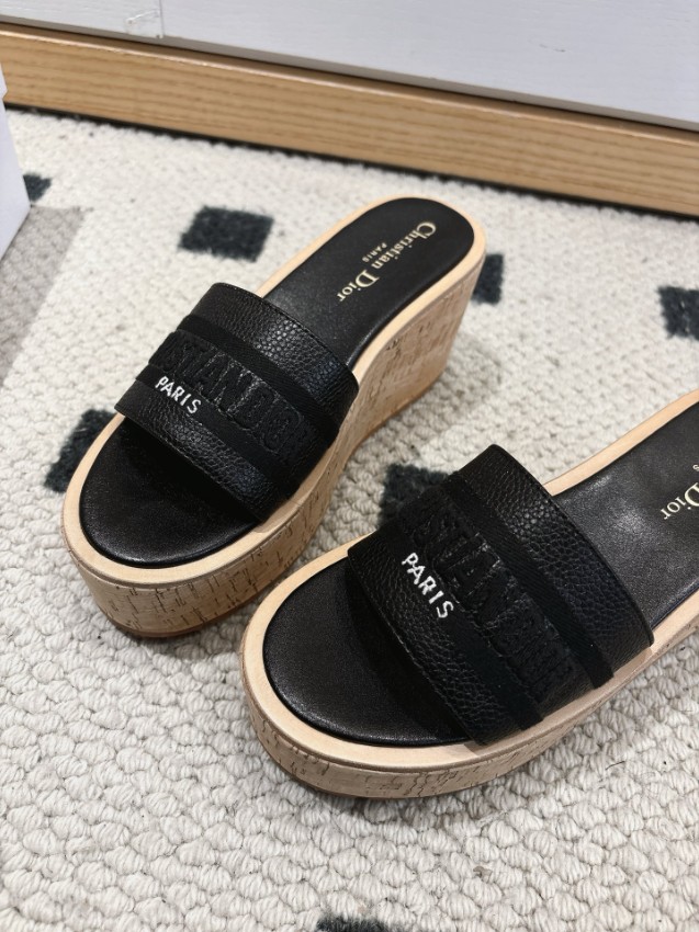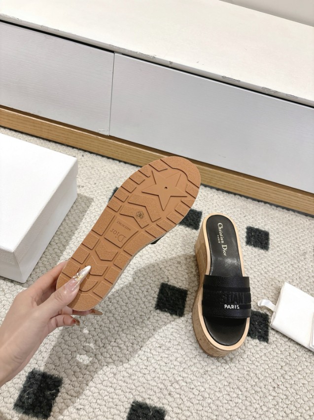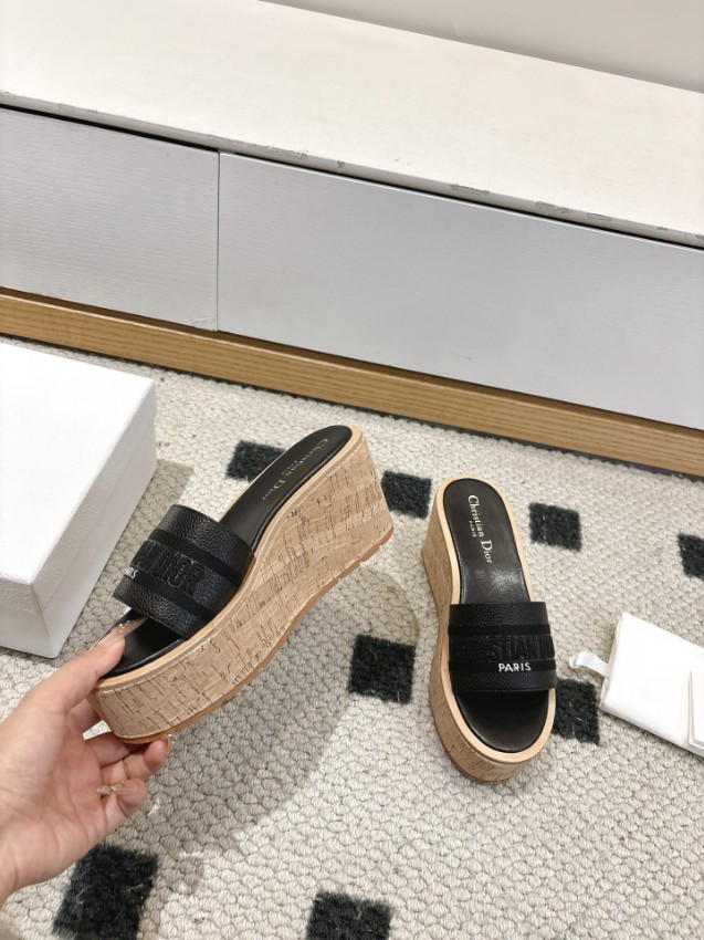 ディオールのエレガントな世界観を再現したハイブランドウェッジサンダルは、シンプルな中にも洗練された魅力が詰まった一足です。フロントのロゴストラップは立体感あるデザインで、さりげなくブランドの存在感を演出。コルク素材のウェッジソールは軽量で安定感があり、長時間の歩行でも疲れにくい設計です。インソールは柔らかな足当たりで、フィット感も良好。ブラックカラーはコーディネートを選ばず、カジュアルからきれいめスタイルまで幅広く活躍します。細部まで丁寧に仕上げられており、日常使いはもちろん旅行やショッピングにも適した実用性の高い一足です。