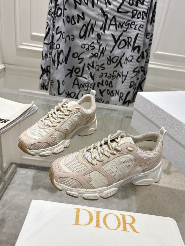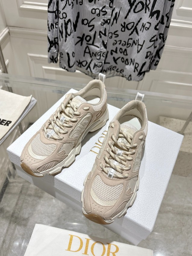ディオールのトレンド感あふれるデザインを取り入れた格安ダッドスニーカーは、ボリューム感あるシルエットと異素材ミックスが魅力の一足です。メッシュ素材を採用することで通気性に優れ、長時間の着用でも快適な履き心地をキープ。アッパーには上質な素材を組み合わせ、立体感のあるデザインに仕上げられています。厚底ソールはクッション性と安定感を兼ね備え、歩行時の負担を軽減しながら自然なスタイルアップ効果も発揮。ベージュ系の柔らかなカラーは様々なコーディネートに合わせやすく、カジュアルからスポーティまで幅広く対応可能です。細部まで丁寧に作り込まれた実用性の高いスニーカーです。