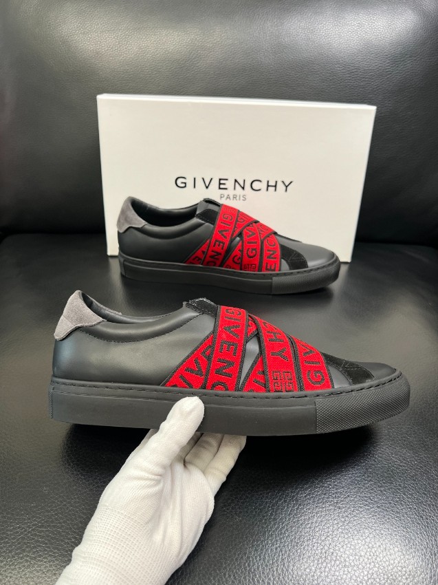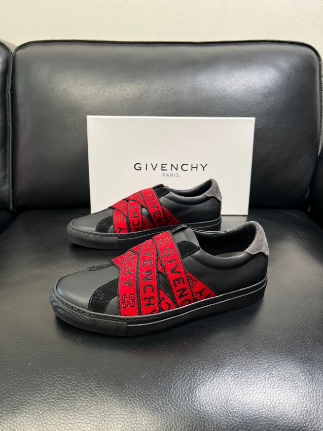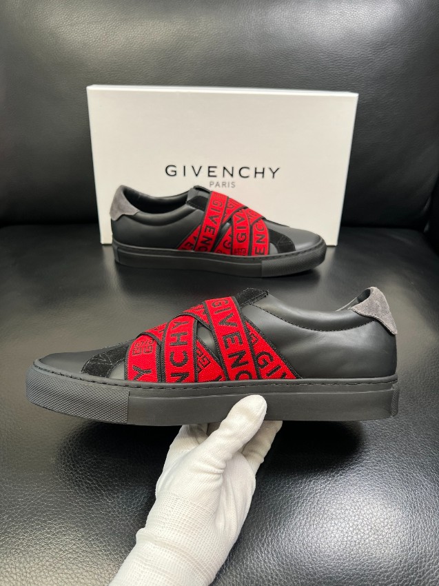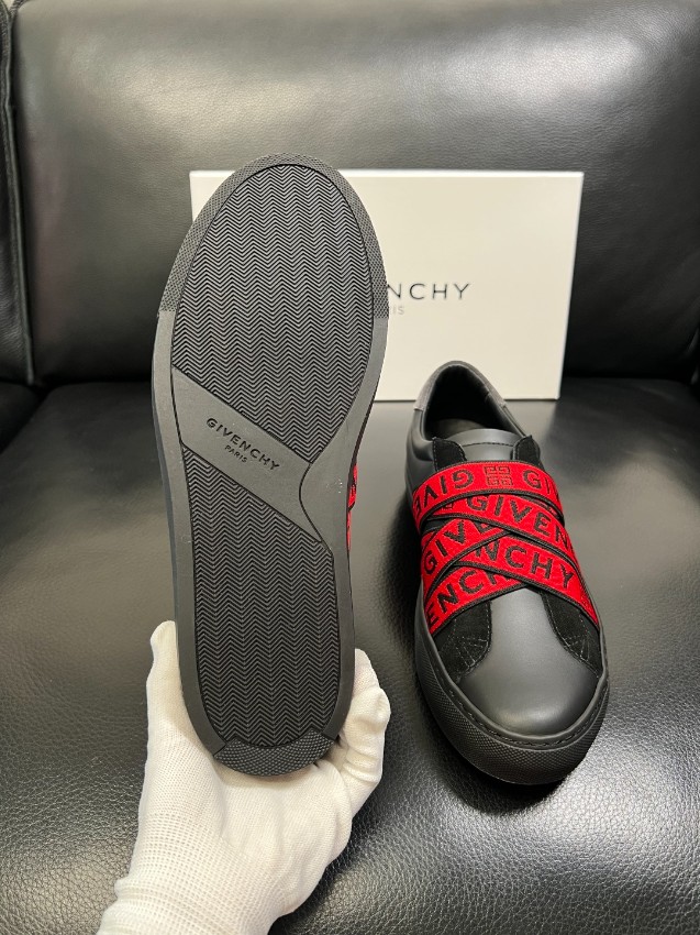 上質なブラックレザーをベースに、フロントへクロス仕様のレッドロゴエラスティックバンドを配置。ブランドロゴが映えるインパクトあるデザインで、足元を主役に演出します。かかと部分にはスエード素材を使用し、異素材の組み合わせが高級感をプラス。スリッポンタイプで着脱がスムーズ、伸縮性のあるバンドが足にフィットし快適な履き心地を実現。ブラックソール仕様で統一感があり、ストリート・カジュアル・モードスタイルまで幅広くコーディネート可能な一足です。