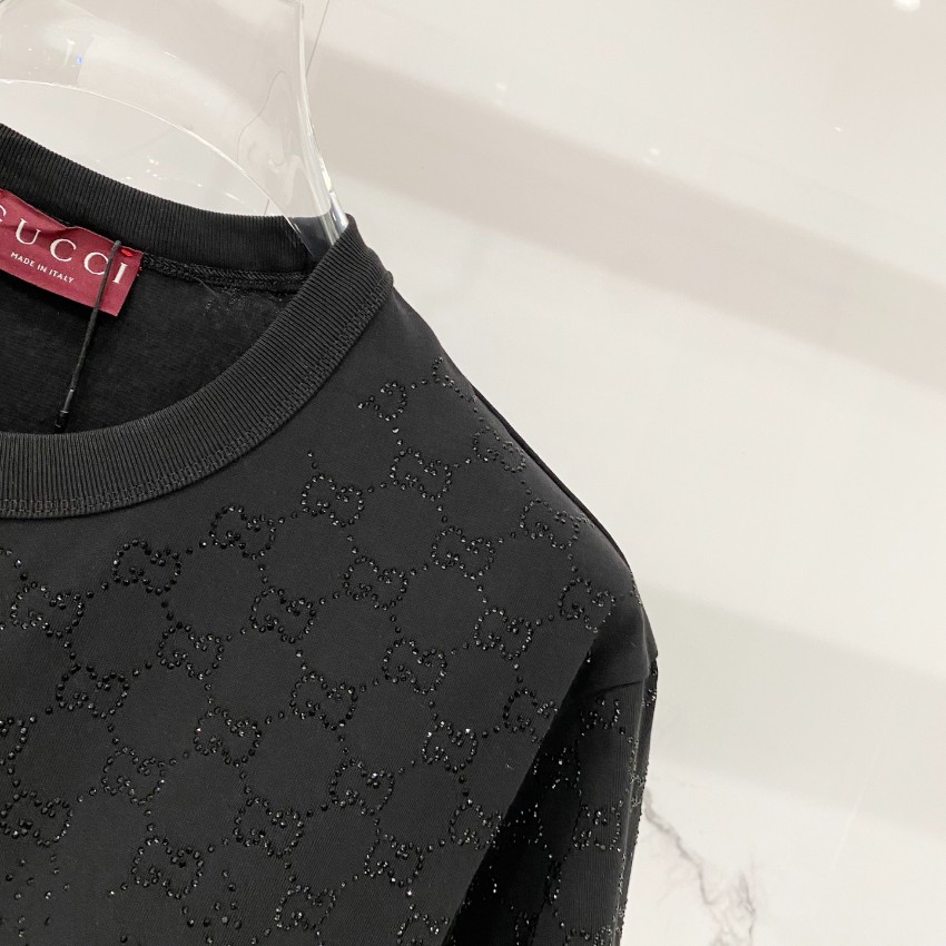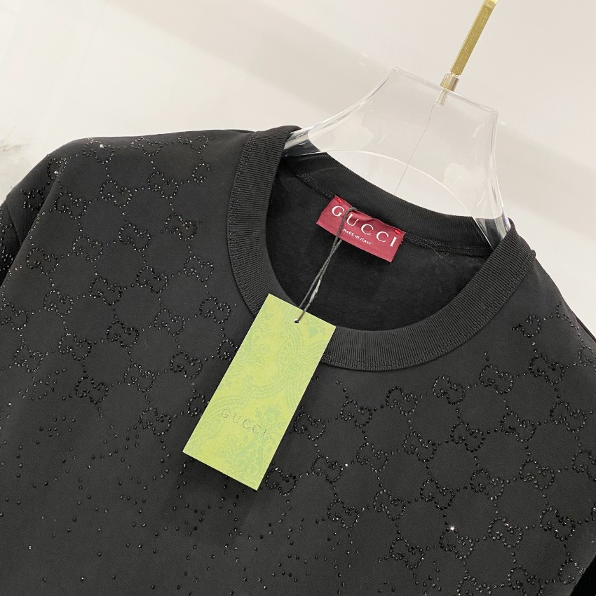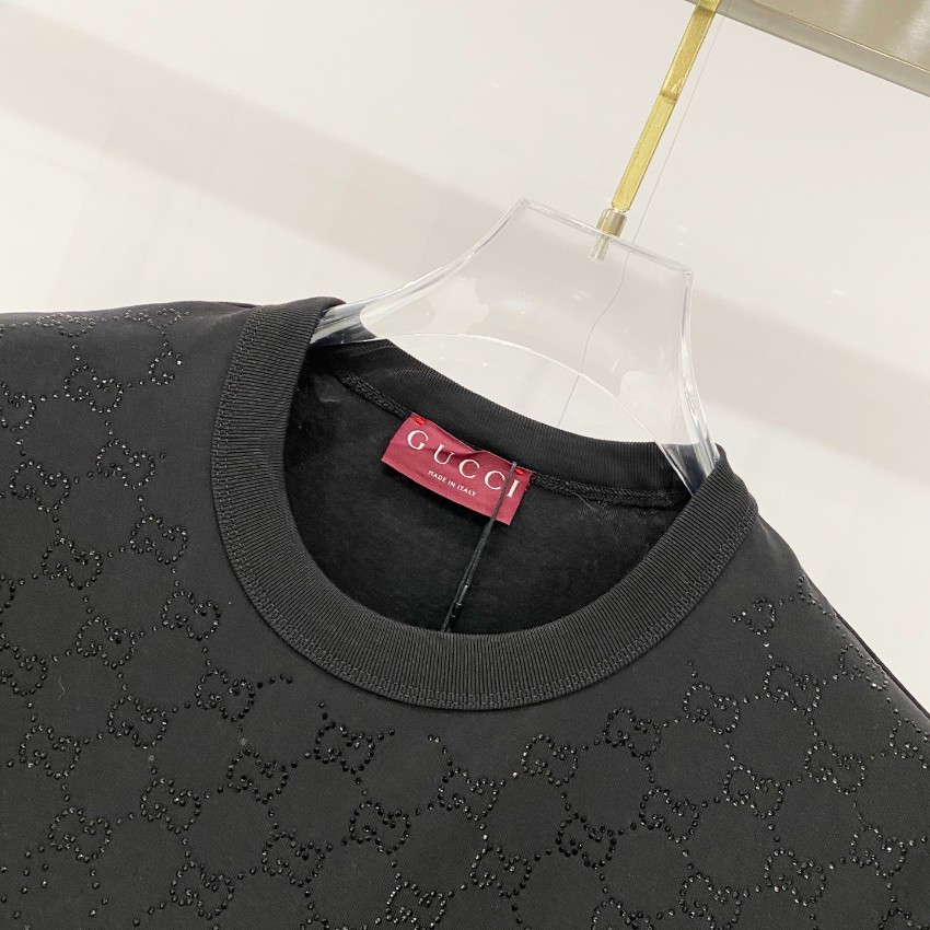 グッチ ハイブランドのストーン装飾Tシャツは、ブラックベースに細やかに配置されたストーンが上品な輝きを放ち、控えめながらも高級感をしっかりと演出するデザインが特徴です。シンプルなシルエットにラグジュアリーな要素を加えることで、日常コーデにも取り入れやすく、ワンランク上のスタイリングを実現。柔らかな素材感で肌触りも良く、快適な着心地をキープします。細部まで丁寧に仕上げられたディテールが魅力で、カジュアルからきれいめまで幅広いシーンで活躍する一枚です。