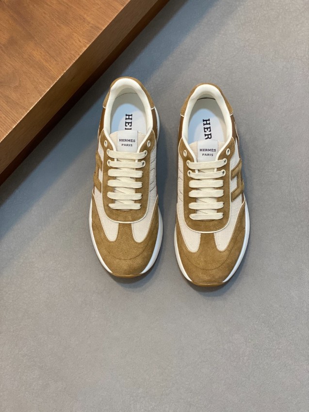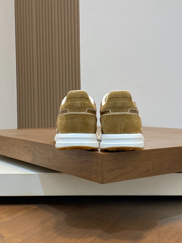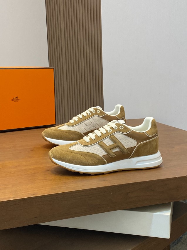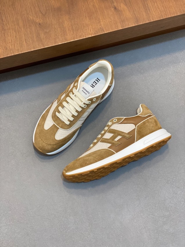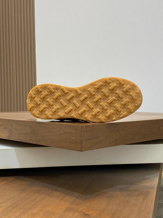 温かみのあるキャメルスエードとベージュファブリックを組み合わせた上質なコンビデザイン。サイドには存在感あるHロゴを配置し、さりげなくブランドテイストを演出します。柔らかなカラーリングは秋冬コーデにも相性が良く、落ち着いた大人の雰囲気を引き立てます。クッション性に優れたインソールと安定感のあるソール構造で、長時間の歩行でも快適。細部まで丁寧に仕上げられた、日常使いからきれいめスタイルまで幅広く活躍する一足です。