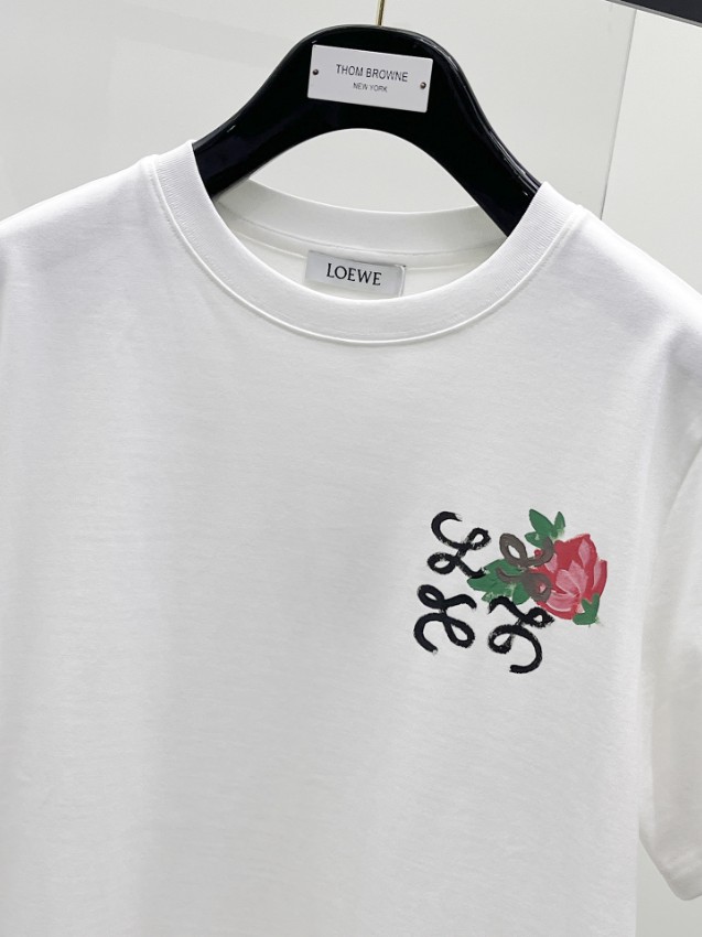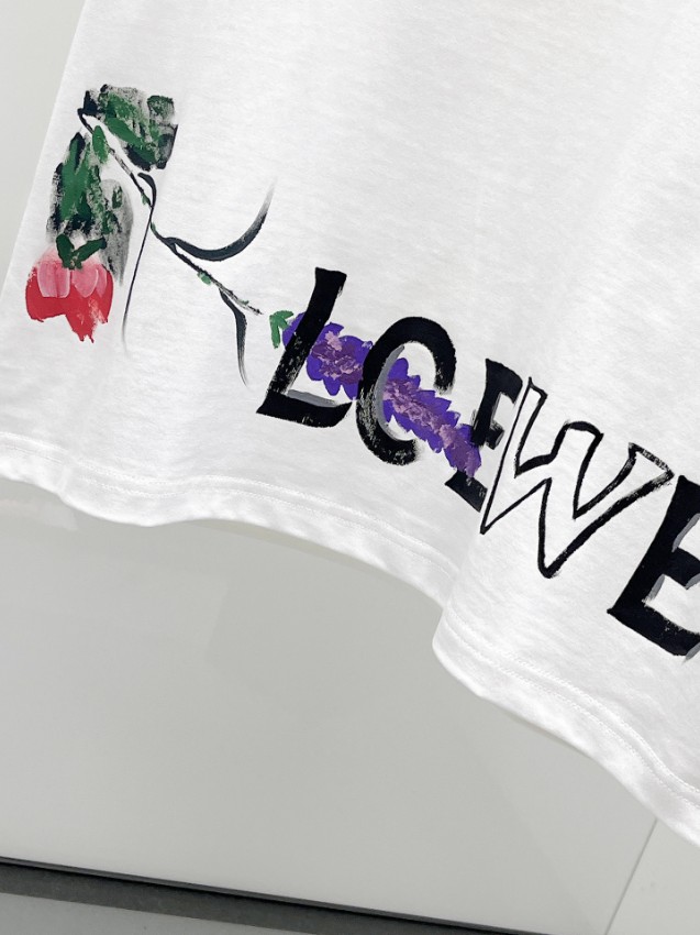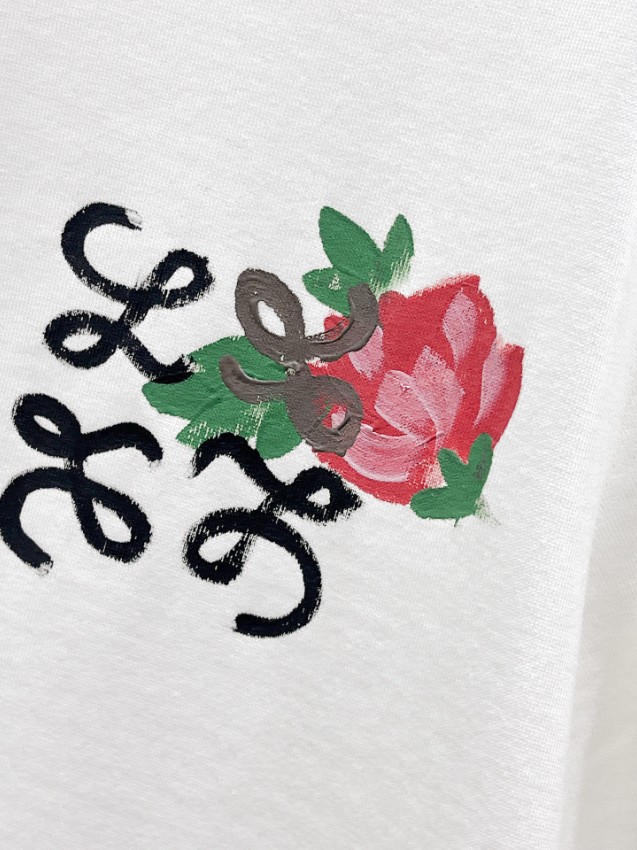 ロエベらしい洗練されたデザインを楽しめるTシャツです。胸元にはフラワーモチーフとアナグラムロゴを組み合わせたデザインが配置され、さらに裾部分にはロゴとフラワーグラフィックが施されており、シンプルながら個性のある仕上がりとなっています。柔らかく通気性の高い素材を使用しているため、夏服として快適な着心地を維持。男女兼用のシルエットは程よいゆとりがあり、デニムやショートパンツ、カーゴパンツなど様々なコーディネートに合わせやすいのも魅力です。精密プリントによるデザインが上質な雰囲気を演出し、日常コーデをおしゃれに引き立ててくれる一着です。