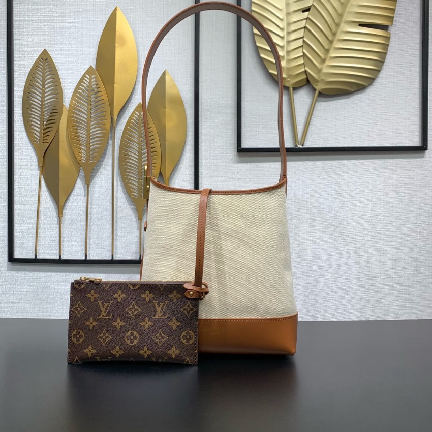 ルイヴィトン(Louis Vuitton)のキャンバス×レザーショルダーバッグは、偽物 バレない再現度の高さで話題の新作。ナチュラルな生成りキャンバスにブラウンレザーを組み合わせ、落ち着いた大人の雰囲気を演出します。付属のモノグラムポーチは単体でも使用可能で、貴重品収納に最適。ショルダーストラップは肩掛けにちょうど良い長さで、実用性も抜群。上品さと機能性を兼ね備えた人気モデルです。
