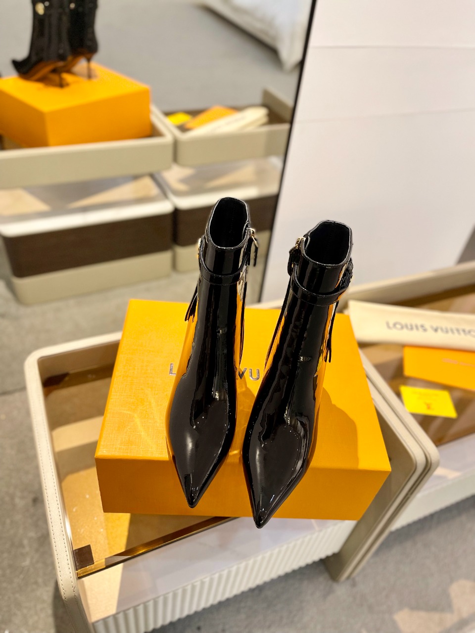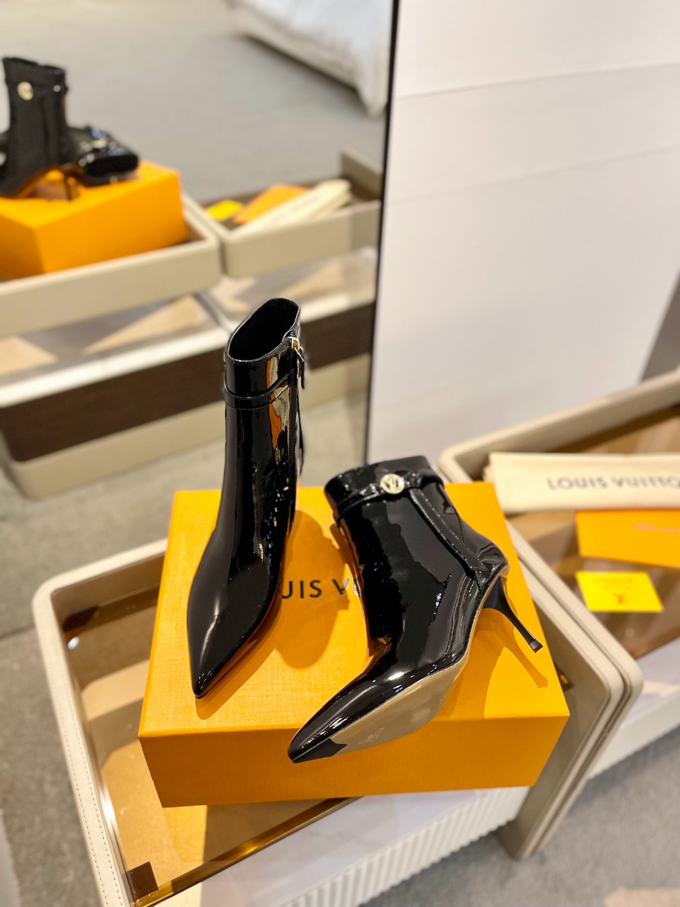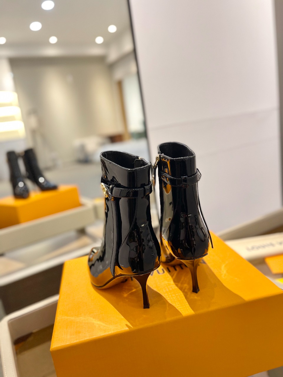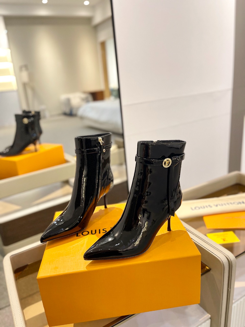ルイ・ヴィトン(Louis Vuitton)の2025年新作ショートブーツは、芸能人の愛用モデルとして注目を集めるエレガントな一足です。艶やかなエナメル素材が高級感を漂わせ、シャープなポインテッドトゥと細身のヒールが脚を美しく引き立てます。高級レベル仕様と職人技術再現により、細部まで忠実に再現された圧倒的な再現度とリアル質感が特徴。フォーマルな装いからデイリーまで幅広く活躍し、スタイリングを格上げします。ブランドの魅力を存分に感じられる本格派モデルは、秘密厳守配送・安心の日本倉庫から確実にお届けいたします。