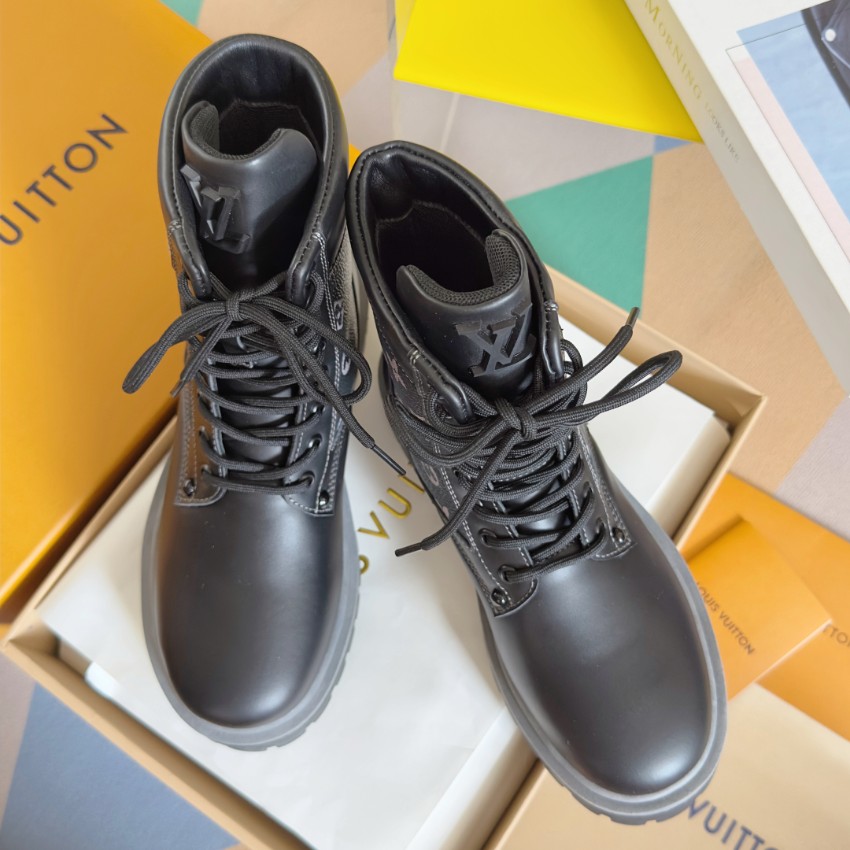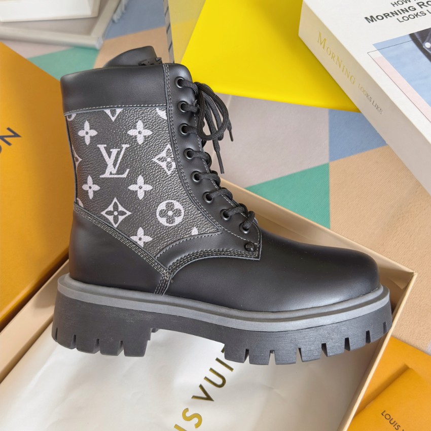 ブランドらしさを最大限に活かした再現度で、細部までこだわっています。ブラックレザーとグレーのモノグラムキャンバスが絶妙に調和し、上品でモードな印象に仕上がった一足。しっかりとしたアウトソールが安定感を生み、長時間の着用でも疲れにくい構造です。購入者からは「実物と区別がつかないほどの完成度」「履き心地が良く、質感も本物級」との声多数。偽物ながらも職人技術の高さが際立つ2025シーズン注目モデルです。高級感と実用性を兼ね備えた本格派ブーツとして、実店舗運営の信頼品質でお届けします。