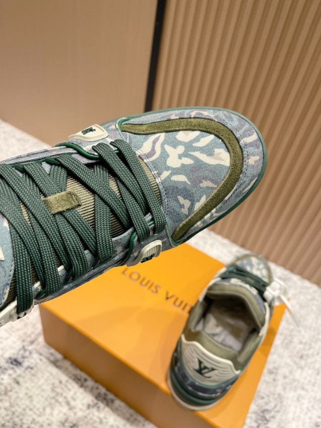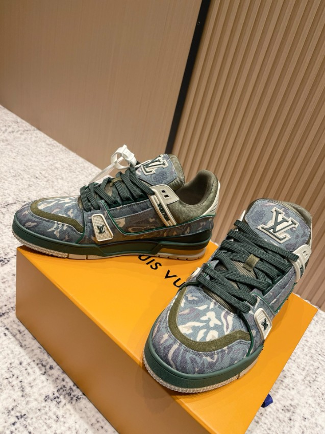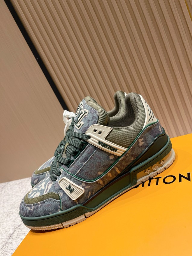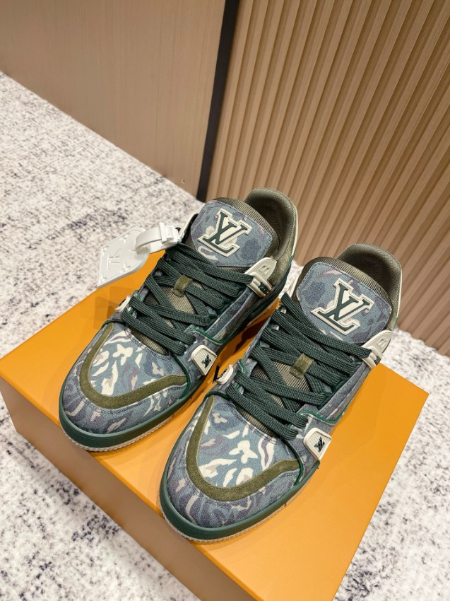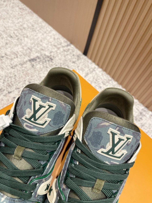 ファッション性と実用性を融合したルイ・ヴィトンのLVトレーナー スニーカー。グリーンカモフラージュのデニム素材とスエードパネルのコンビネーションが独特の表情を生み出し、ヴィンテージ感と高級感を同時に楽しめるデザインです。厚みのあるソールが快適な履き心地を提供し、長時間の使用でも疲れにくい構造。LVロゴをアクセントに配した仕上げで、足元に圧倒的な存在感をプラス。激安屋口コミでも高評価レビュー多数の一足で、トレンド感と品質を求める方に最適なモデルです。
