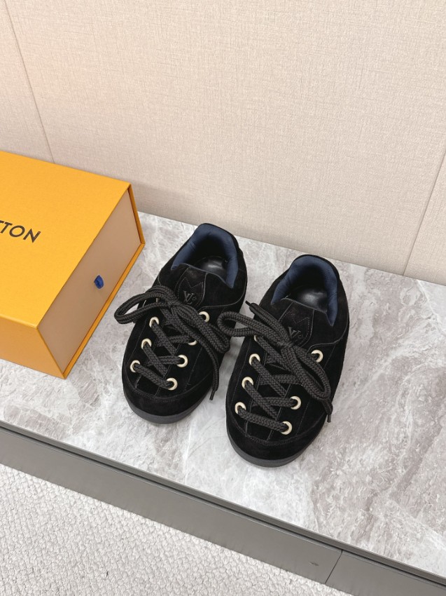 ルイ・ヴィトンのアイコニックなスタイルをモダンに再解釈したスエードスニーカーは、柔らかな質感とエレガントなフォルムが魅力。上質スエードを使用し、履き心地の良さと耐久性を両立。高再現度のディテールが際立つ完成度で、カジュアルスタイルから上品なコーディネートまで幅広く対応します。厚みのあるシューレースやゴールドハトメがさりげないラグジュアリー感を演出。2025年注目のブラックトーンスニーカーとして、多くのリピーターから高評価を得ています。