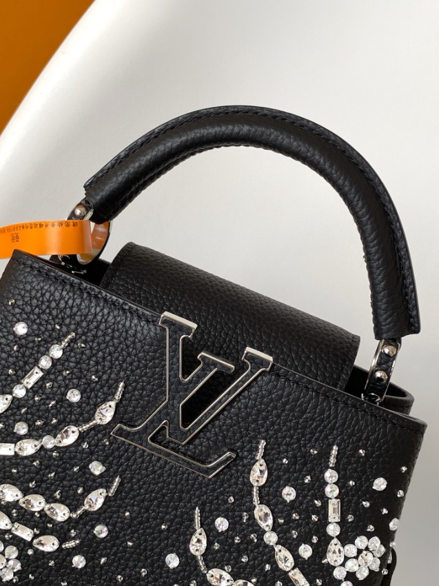 高再現度で仕上げた本モデルは、細部のクオリティにこだわった一点です。ルイ・ヴィトンのカプシーヌBBをベースに、深みのあるブラックレザーにクリスタルビジュー刺繍を立体的に施し、華やかな輝きと洗練された雰囲気をブランド コピー仕様ながら見事に再現しています。金具の質感、ステッチの精密さ、フォルムの均整まで丁寧に作り込まれ、「ブラックの落ち着きが上品で合わせやすい」といった声も寄せられています。ハンド・ショルダー両用の2WAYデザインで実用性も高く、2025新作らしい高級感仕上げが魅力。安心の日本倉庫発送で口コミ多数の人気モデルです。