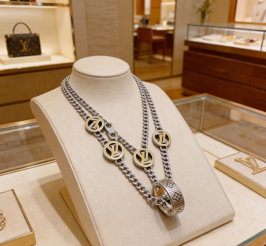 重なり合うダブルチェーンにLVロゴモチーフをあしらったルイヴィトン 本物級コピー ネックレスは、存在感と上質感を兼ね備えたデザインが特徴です。メタル部分の光沢や刻印の立体感、接続部の仕上げまで細部にこだわり、本革使用のパーツがアクセントとして高級感を高めています。程よいボリューム感で、シンプルなトップスに合わせるだけでもコーディネートを格上げ。単体使いはもちろん、レイヤードスタイルにも対応できる万能アクセサリーとして、デイリーから特別なシーンまで幅広く活躍します。
