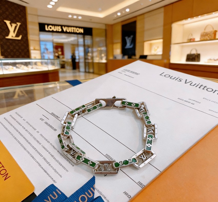 存在感あるリンクチェーンにグリーンエナメルを組み合わせたルイヴィトン n級 ブレスレットは、モダンで洗練されたデザインが印象的です。各リンク部分には正確な刻印が施され、ロゴやモノグラムモチーフの配置まで細部にこだわった仕上がり。滑らかな金具と程よい重量感が高級感を演出し、着用時のフィット感も自然です。単体使いでも十分な存在感があり、腕時計や他アクセサリーとの重ね付けにも最適。カジュアルからきれいめスタイルまで幅広く合わせやすく、日常コーデを格上げするアイテムです。
