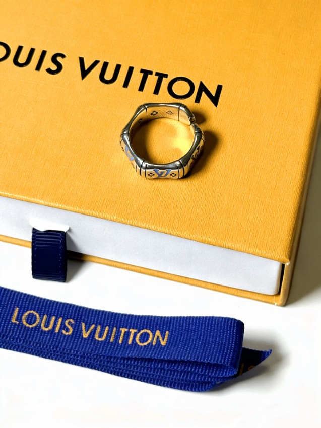 ルイヴィトンのアイコニックなモノグラムパターンをリンク型デザインに落とし込んだ本物級コピーリング。リング全体に配置されたメタルパーツにはLVロゴやフラワーモチーフが刻印され、中央にはブルーカラーのロゴがアクセントとして施されています。立体的なフォルムが手元に程よい存在感を与え、カジュアルからモードスタイルまで幅広いコーディネートに合わせやすいのが特徴。滑らかなメタル仕上げにより指に自然にフィットし、快適な着用感を実現しています。日常使いでも上質感を楽しめるデザインで、ファッションアクセサリーとしても人気を集めるジュエリーアイテムです。