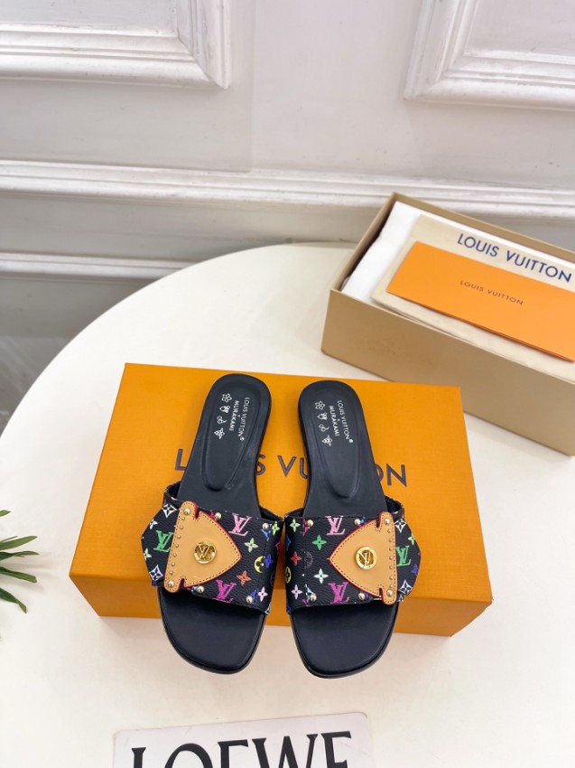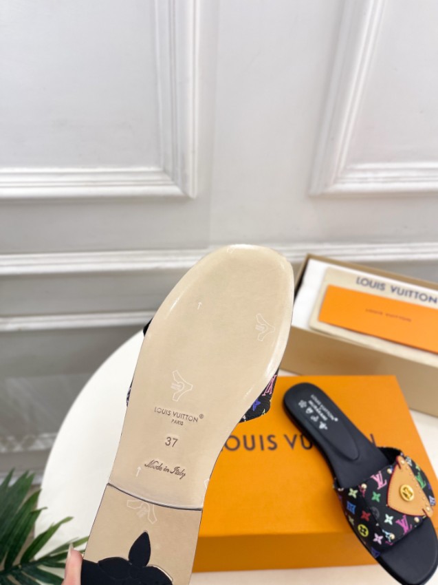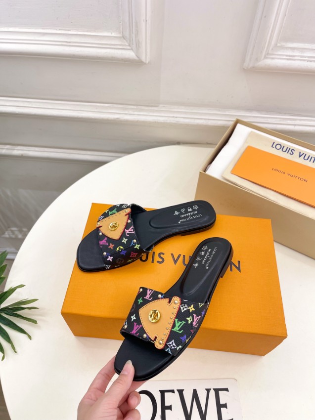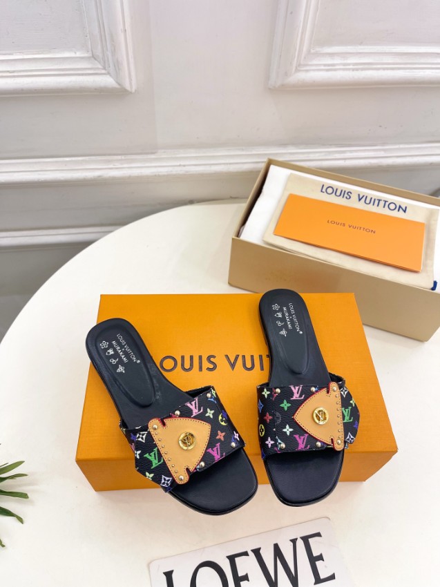 ルイヴィトン n級として仕上げられた本フラットサンダルは、ブラックベースにカラフルなモノグラムをあしらった華やかなデザインが特徴です。フロントにはレザーパーツとスタッズ、ロゴ金具を組み合わせ、立体感のあるディテールで存在感を演出します。フラット設計により安定感があり、長時間の歩行でも快適な履き心地をキープ。細部まで忠実に再現された仕上がりが魅力で、カジュアルコーデからリゾートスタイルまで幅広く活躍する一足です。