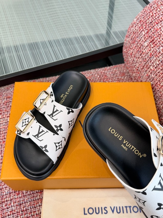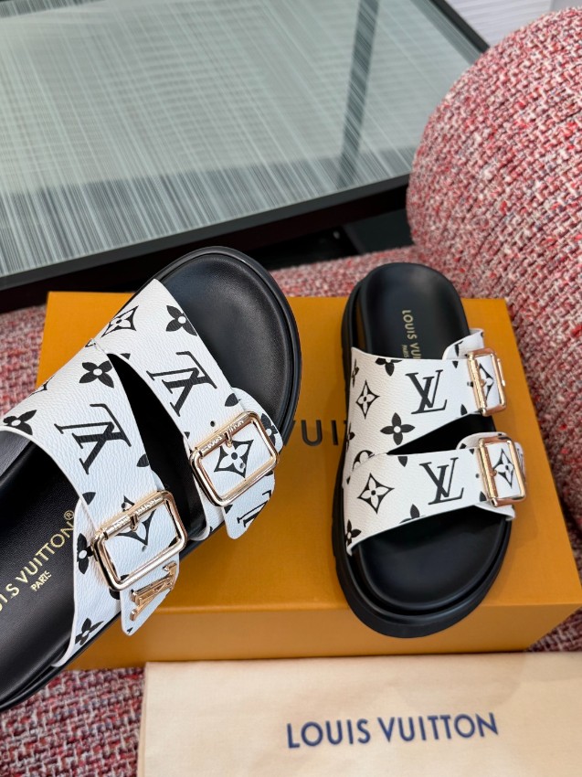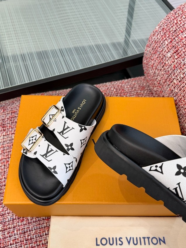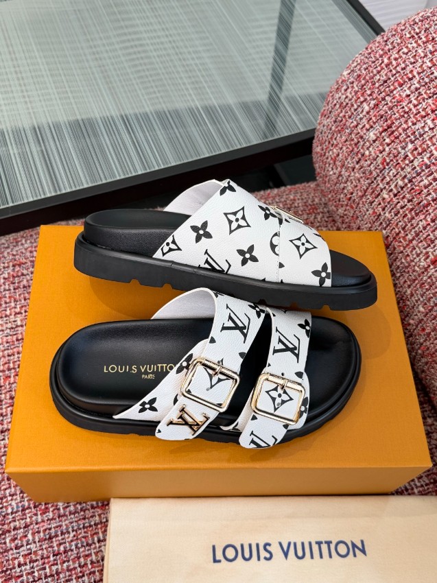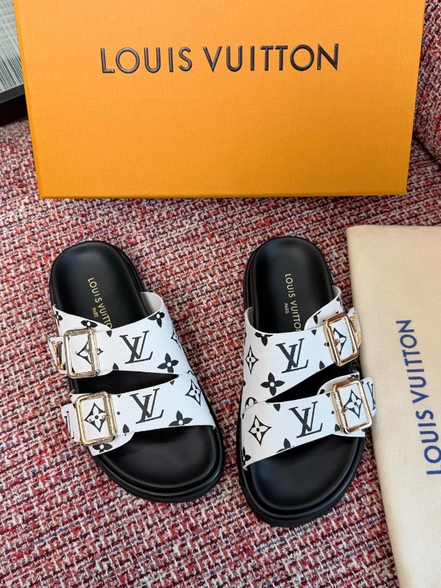 ルイヴィトン ハイブランド ダブルベルトサンダルは、ホワイトベースにブラックモノグラムを配したスタイリッシュなデザインが印象的なモデルです。存在感のあるゴールドバックルがアクセントとなり、シンプルなコーディネートにも華やかさをプラス。しなやかな素材を使用したアッパーは足に自然にフィットし、長時間の着用でも快適な履き心地を実現します。ダブルベルト仕様によりフィット感の調整が可能で、安定した歩行をサポート。クッション性に優れたフットベッドと滑りにくいアウトソールで実用性も高く、日常使いから旅行まで幅広いシーンに対応。高評価を集める理由を実感できる、機能性とデザイン性を兼ね備えた一足です。