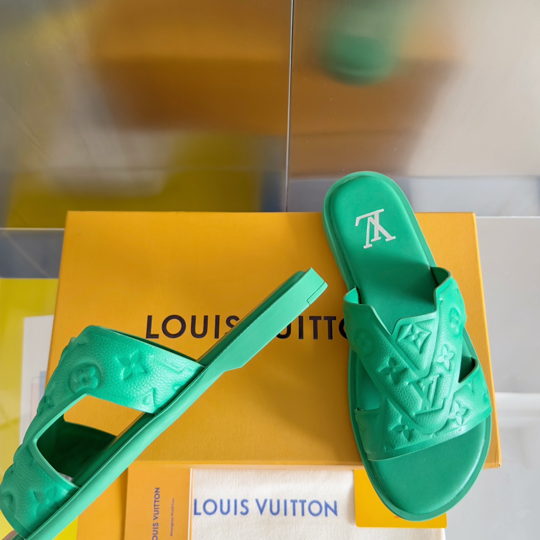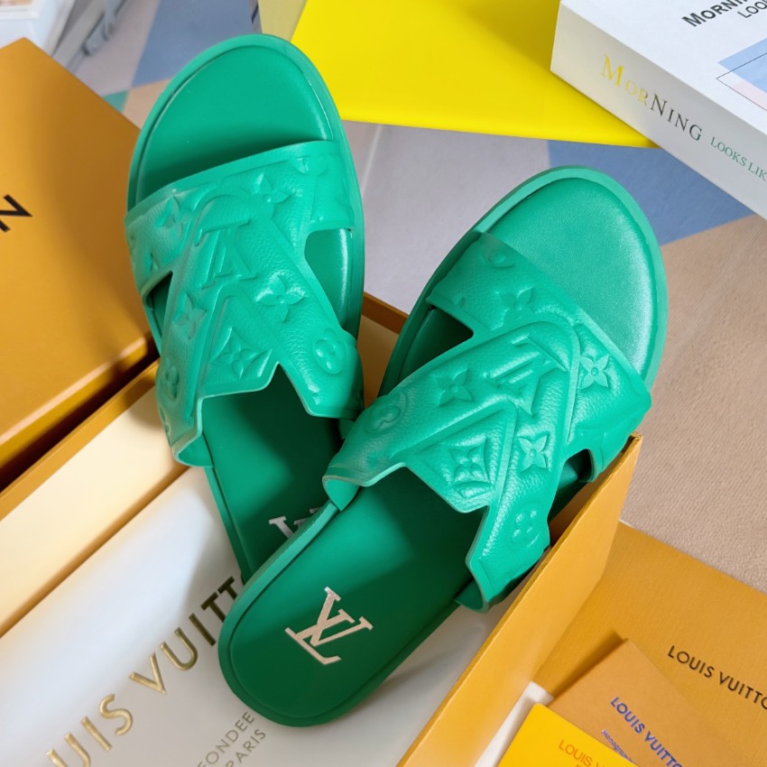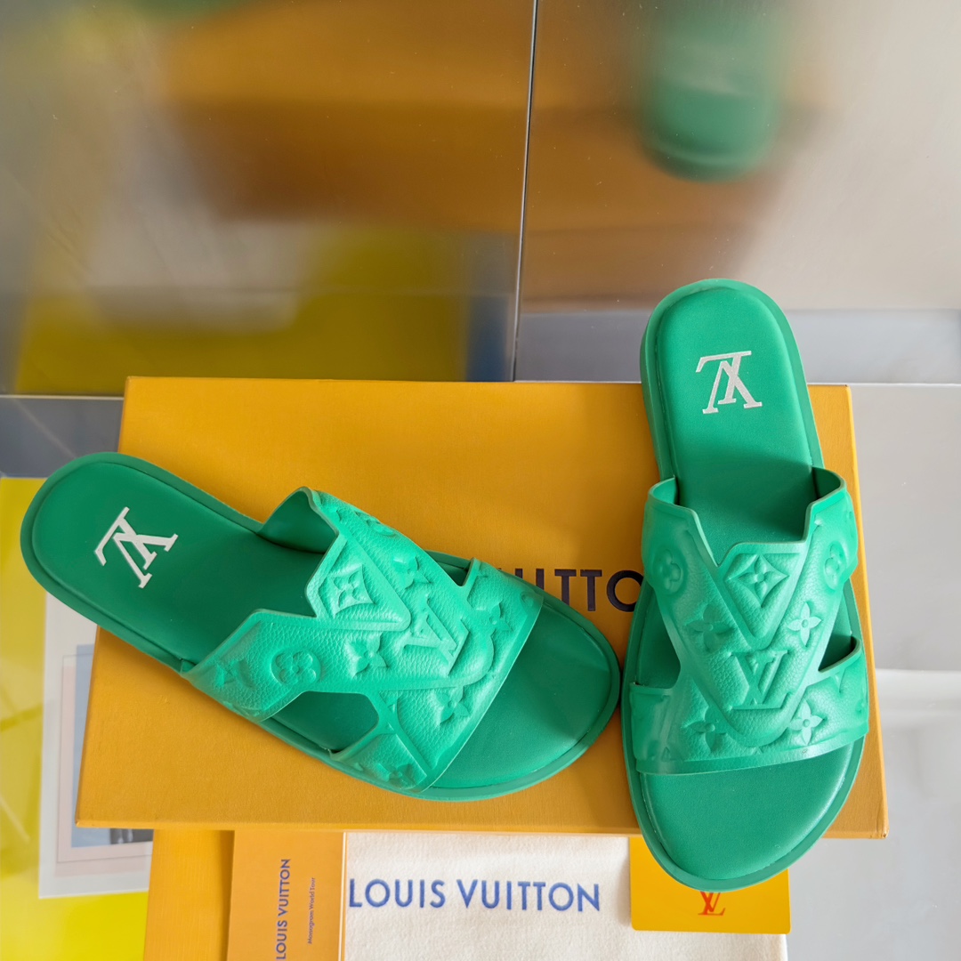 鮮やかなグリーンカラーが目を引くルイヴィトンのブランド コピーサンダルは、立体的に施されたモノグラムエンボスが特徴的なデザインです。柔らかく軽量なラバー素材を採用し、足への負担を軽減しながら快適な履き心地を実現。幅広のストラップがしっかりとフィットし、安定感のある歩行をサポートします。インソールにはブランドロゴを配置し、シンプルながらも高級感を演出。カジュアルスタイルにはもちろん、リゾートやビーチシーンにも最適で、コーディネートのアクセントとして活躍する一足です。細部まで丁寧に仕上げられた上質感が魅力のアイテムです。