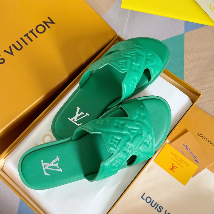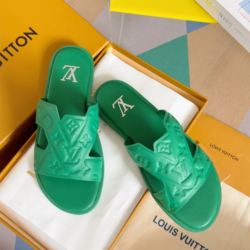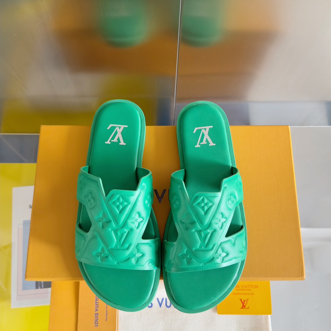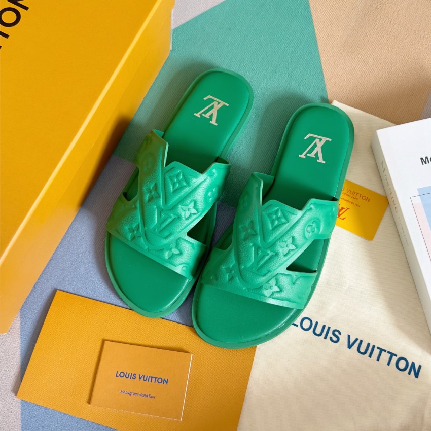 鮮やかなグリーンカラーが目を引くルイヴィトンのブランド コピーサンダルは、立体的に施されたモノグラムエンボスが特徴的なデザインです。柔らかく軽量なラバー素材を採用し、足への負担を軽減しながら快適な履き心地を実現。幅広のストラップがしっかりとフィットし、安定感のある歩行をサポートします。インソールにはブランドロゴを配置し、シンプルながらも高級感を演出。カジュアルスタイルにはもちろん、リゾートやビーチシーンにも最適で、コーディネートのアクセントとして活躍する一足です。細部まで丁寧に仕上げられた上質感が魅力のアイテムです。