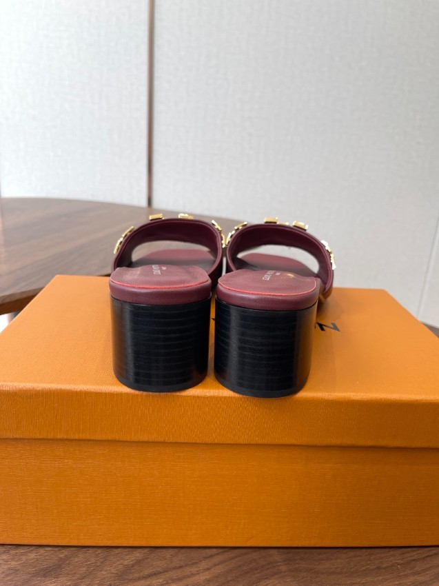 深みのあるボルドーカラーが印象的なルイヴィトンのハイブランドヒールサンダルは、フロントにあしらわれたLVロゴメタルがラグジュアリーな存在感を放つ一足です。しっとりとした質感のアッパー素材が足に優しくフィットし、快適な履き心地を実現。程よい高さのヒールは安定感があり、歩行時の負担を軽減します。スクエアトゥのシルエットがトレンド感をプラスし、カジュアルからきれいめスタイルまで幅広く対応可能。細部まで丁寧に再現された高再現度仕様により、洗練された足元を演出し、日常コーデに上質なアクセントを加えるアイテムです。