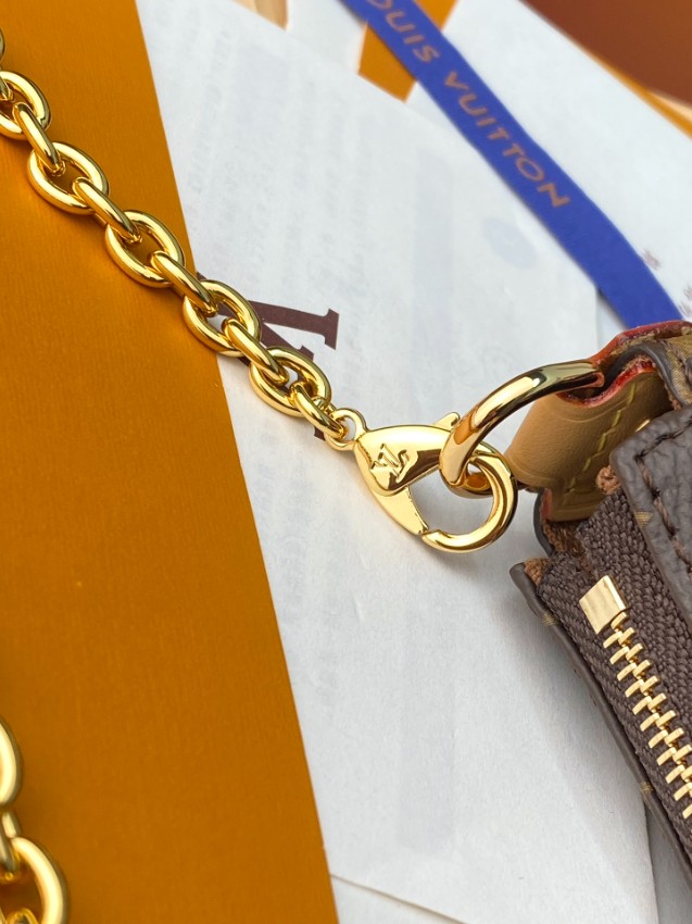 スーパーコピー仕様で丁寧に再現されたチェーンポーチは、ルイヴィトンのアイコニックなモノグラムパターンが際立つシンプルかつ上品なデザインが魅力です。スリムなフォルムながらもスマートフォンや小物をしっかり収納でき、実用性も兼ね備えています。ゴールドチェーンが華やかさをプラスし、肩掛けや手持ちでスタイルに合わせた使い方が可能。細部の縫製や金具の質感にもこだわり、上質感を追求した仕上がり。デイリーからちょっとした外出まで幅広く使える万能アイテムです。
