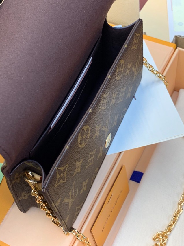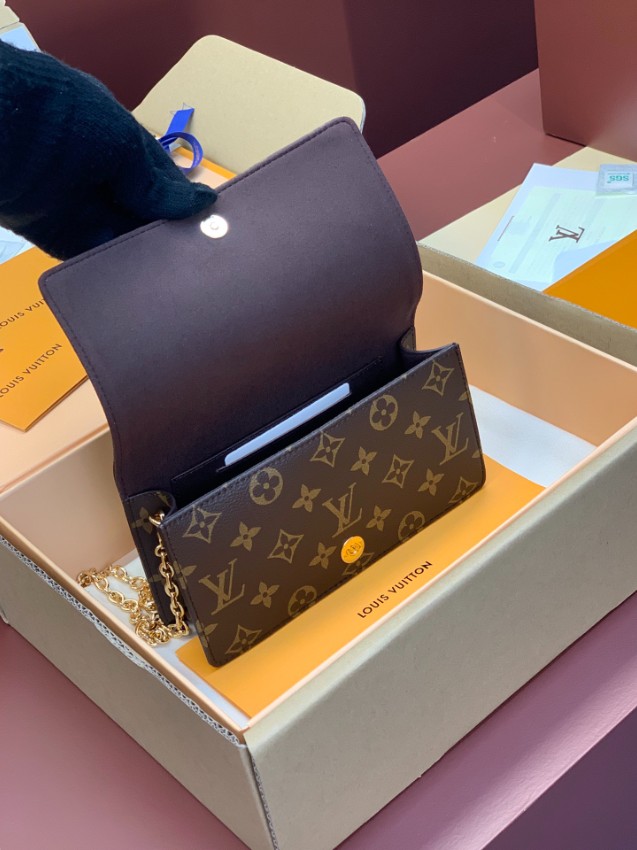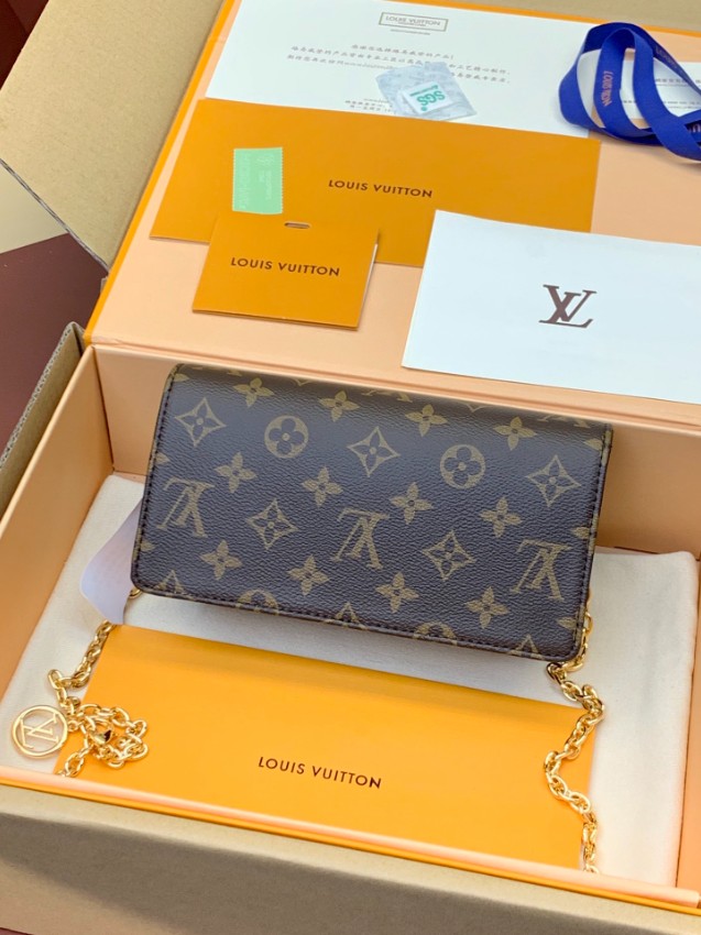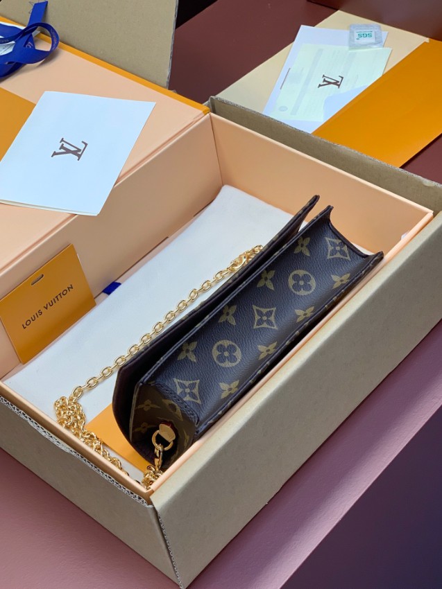 ルイヴィトンの象徴的なモノグラムパターンをベースに仕上げたn級チェーンウォレットは、落ち着いたブラウンカラーとゴールド金具の組み合わせが上品で洗練された印象を演出します。フロントのプレートディテールやチャーム付きチェーンがアクセントとなり、シンプルながら存在感のあるデザインに仕上がっています。内部はカードポケットや仕切りが充実しており、紙幣や小物を整理しやすく、実用性も抜群です。チェーンは取り外し可能でクラッチバッグとしても使用でき、シーンに応じてスタイルを変えられる点も魅力。丁寧な縫製と質感の良い素材使いにより、高品質な仕上がりを実感できる一品です。