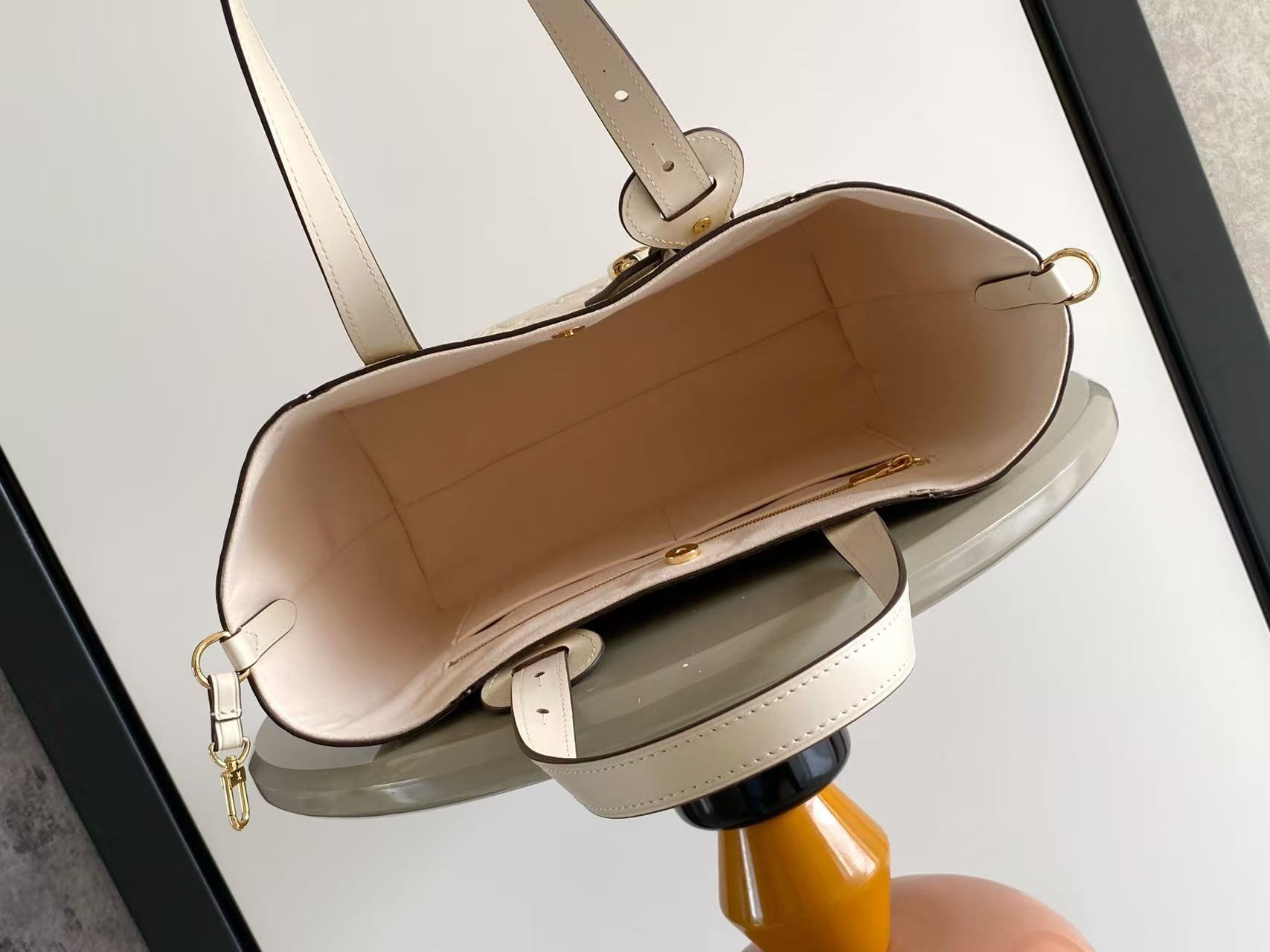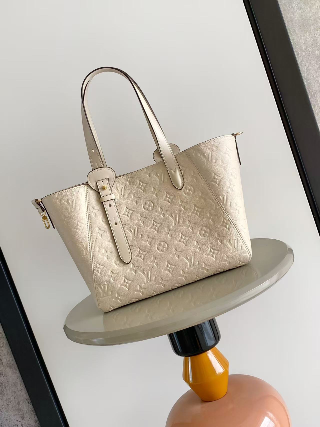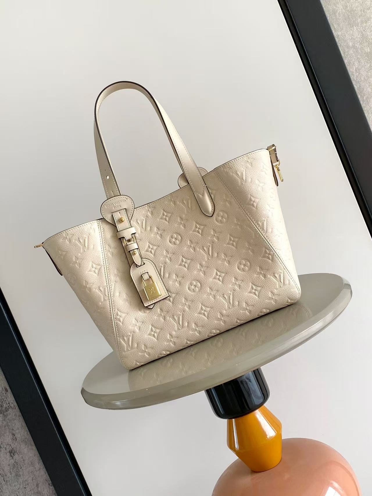 ルイヴィトンのアンプラントラインを再現したn級トートバッグは、柔らかなレザーにモノグラムのエンボス加工を施し、洗練された上質感を演出します。落ち着いたアイボリーカラーがコーディネートに自然に馴染み、上品な印象を与えるデザインが特徴です。大容量の収納スペースを備えており、書類やタブレット、小物類までしっかり整理できる実用性の高さも魅力。肩掛けしやすいハンドル設計で日常使いからビジネスシーンまで快適に使用可能です。丁寧な縫製と細部までこだわった仕上げにより、長く愛用できる完成度の高いアイテムです。