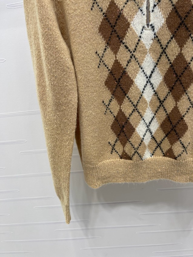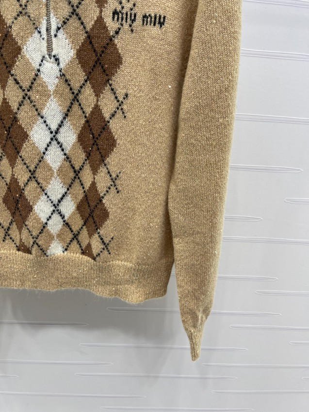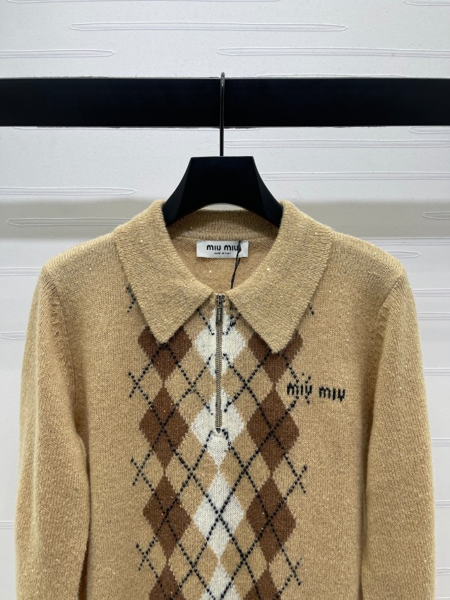 上品なベージュカラーにクラシカルなアーガイル柄をあしらった襟付きニットは、ミュウミュウらしいエレガンスと可愛らしさを兼ね備えた一着。柔らかなウール混素材で軽やかな着心地を実現し、秋冬シーズンに最適です。ブランドロゴの刺繍も高級感仕上げで丁寧に再現され、細部まで美しい完成度。どんなコーデにも合わせやすく、通勤やデートスタイルにもぴったり。「肌触りが良く上品」「高見えする」と口コミでも高評価。安心の日本倉庫から即納対応いたします。