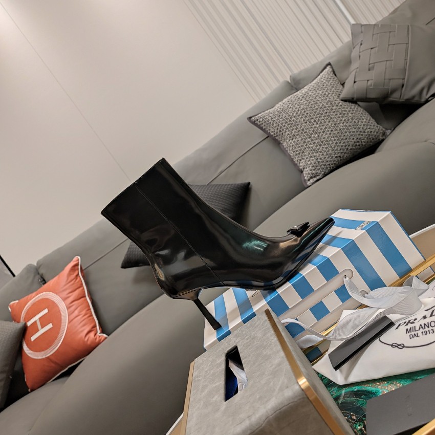 再び人気再燃中のプラダ 偽物ショートブーツは、ブラックエナメルが放つ艶やかさが特徴。シャープなポインテッドトゥがエッジの効いた印象を与え、シンプルながらも存在感のあるデザインに仕上がっています。ヒールラインからつま先にかけての美しいシルエットは、脚を長く見せる効果も抜群。軽量で履き心地も快適なため、デイリーからナイトシーンまで幅広く活躍。完売続出の話題モデルとして、多くのファッショニスタに選ばれています。偽物ながら高再現度を誇る逸品。